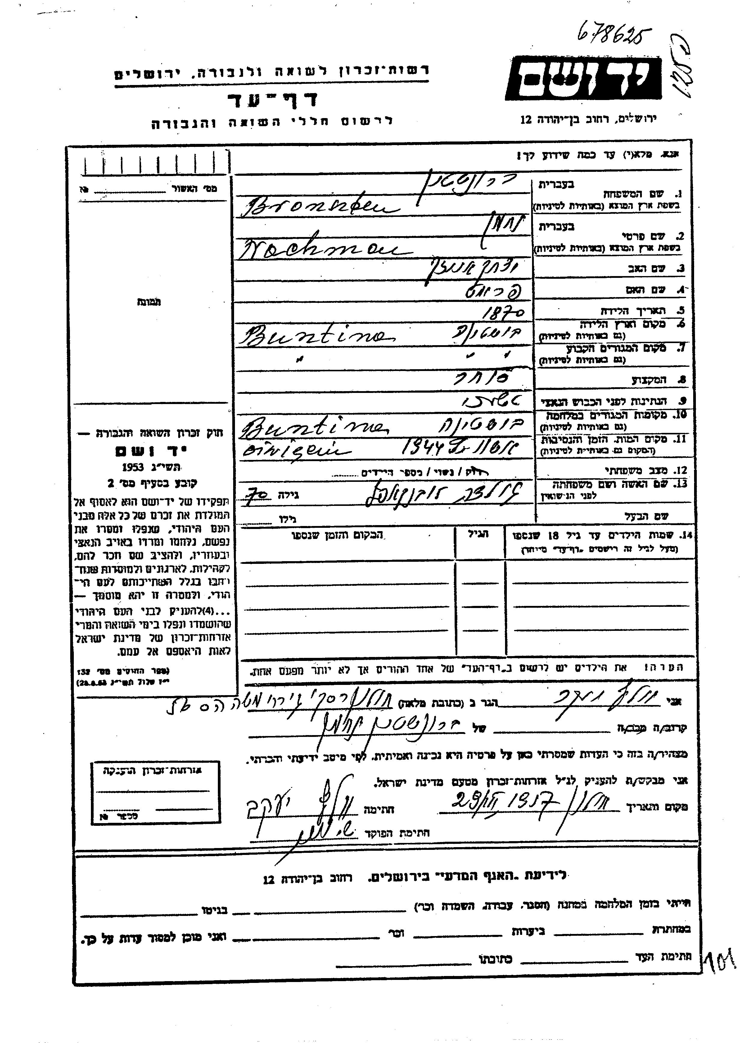 Braunshtein | Nachman | 1870 | Busztina, Tschechoslowakei | Gedenkblatt |