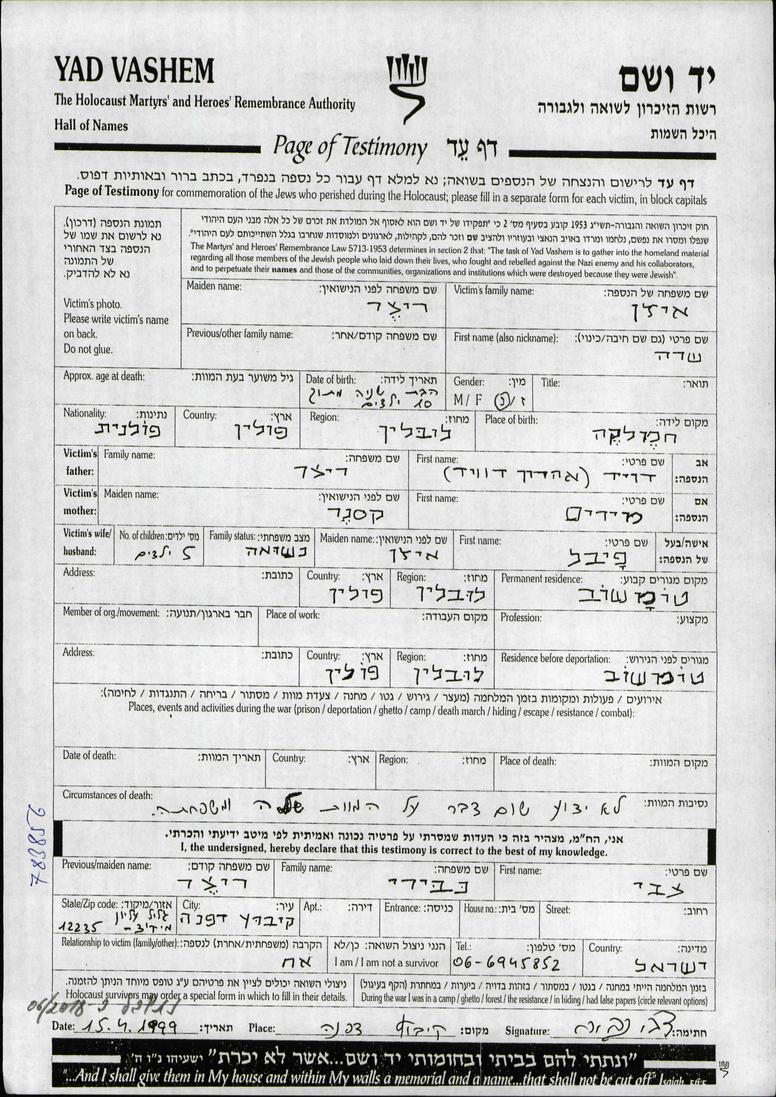 Yad Vashem - Gedenkblätter Sammlung