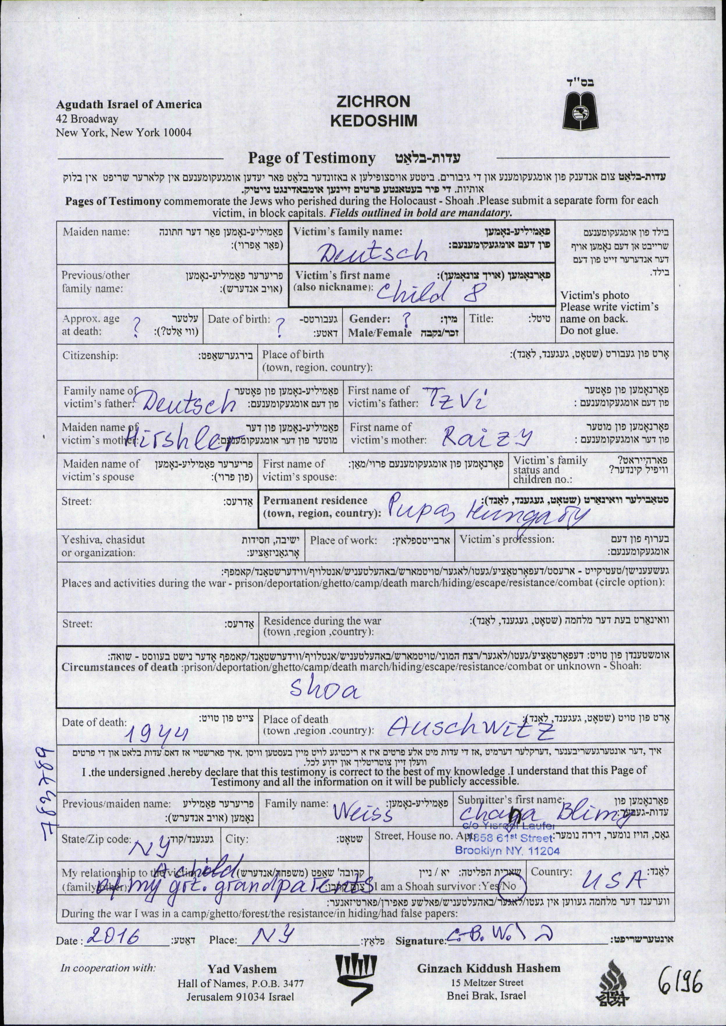 Er/sie wurde in der Schoah ermordet. Todesort: Auschwitz, Polen im Jahr 1944.