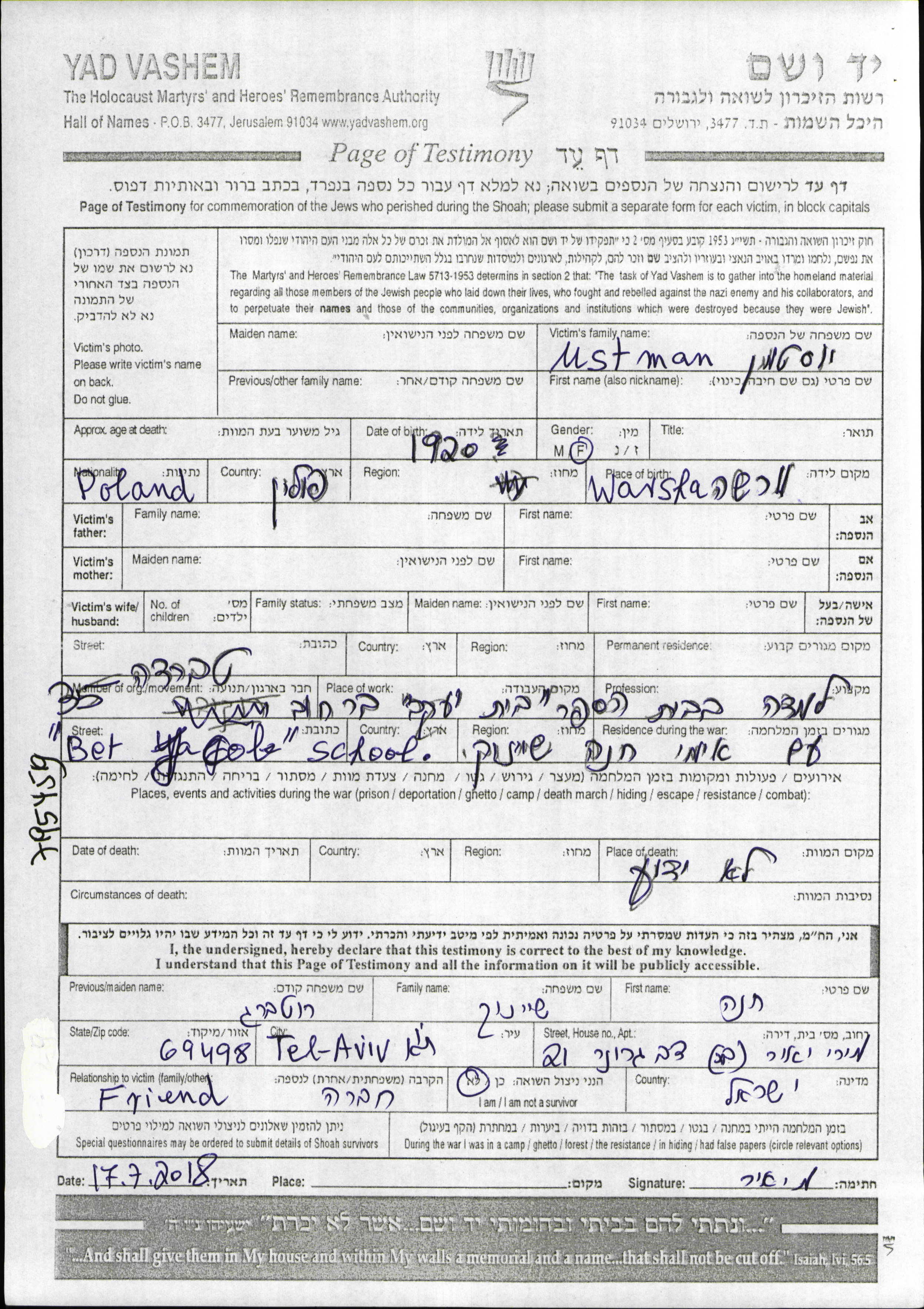 Vorname unbekannt Ustman wurde im Jahr 1920 in Warszawa, Polen geboren.