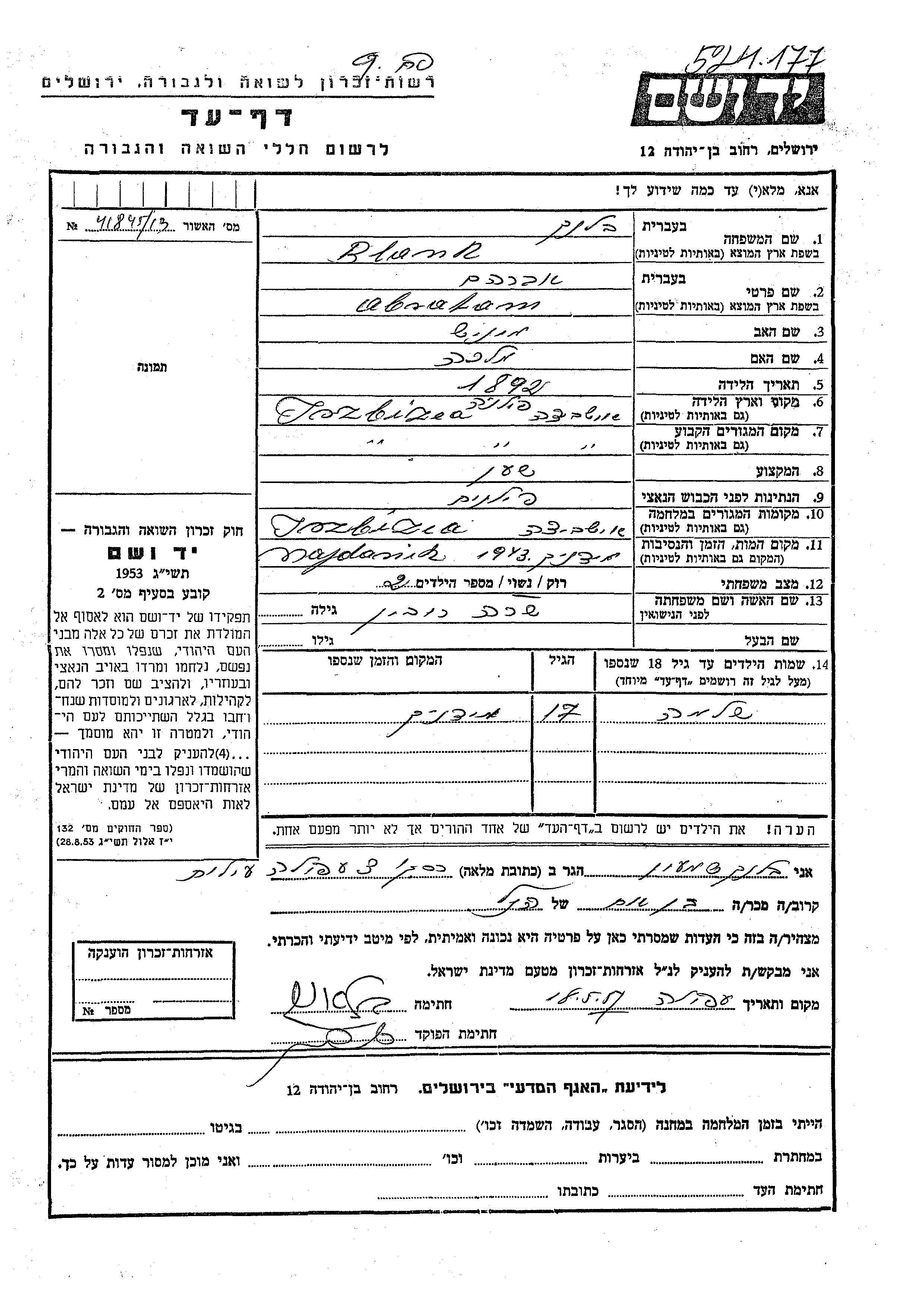 Blank Abraham 1892 Izbica, Polen Gedenkblatt