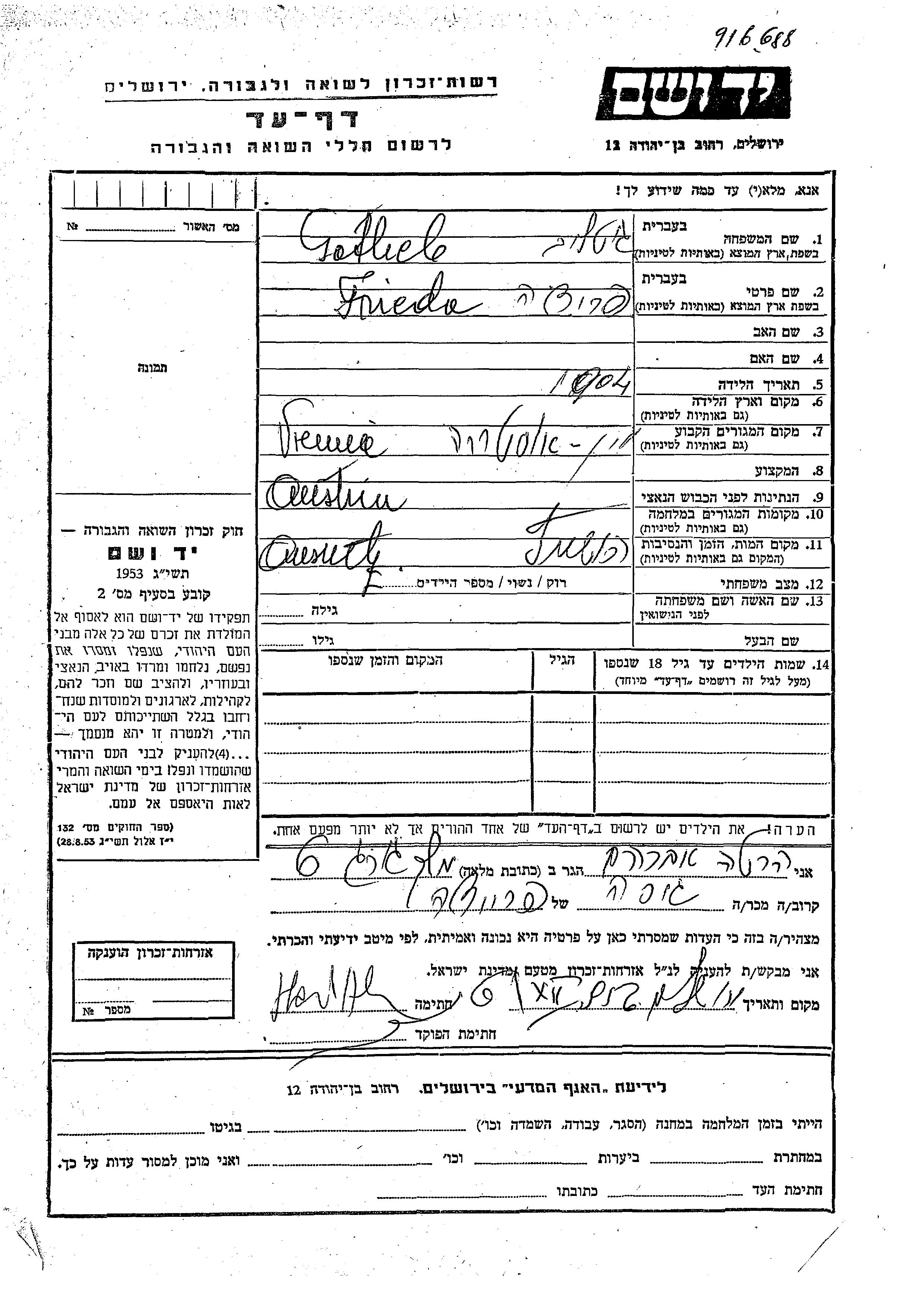 Frida Gotlieb wurde im Jahr 1904 geboren. Vor dem Zweiten Weltkrieg lebte sie in Vienna, Österreich.