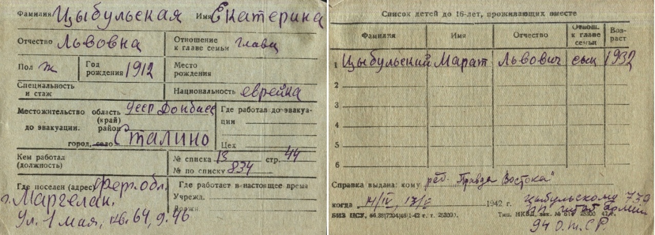 Yekaterina wurde nach der Evakuierung/ ins Innere der Sowjetunion registriert.