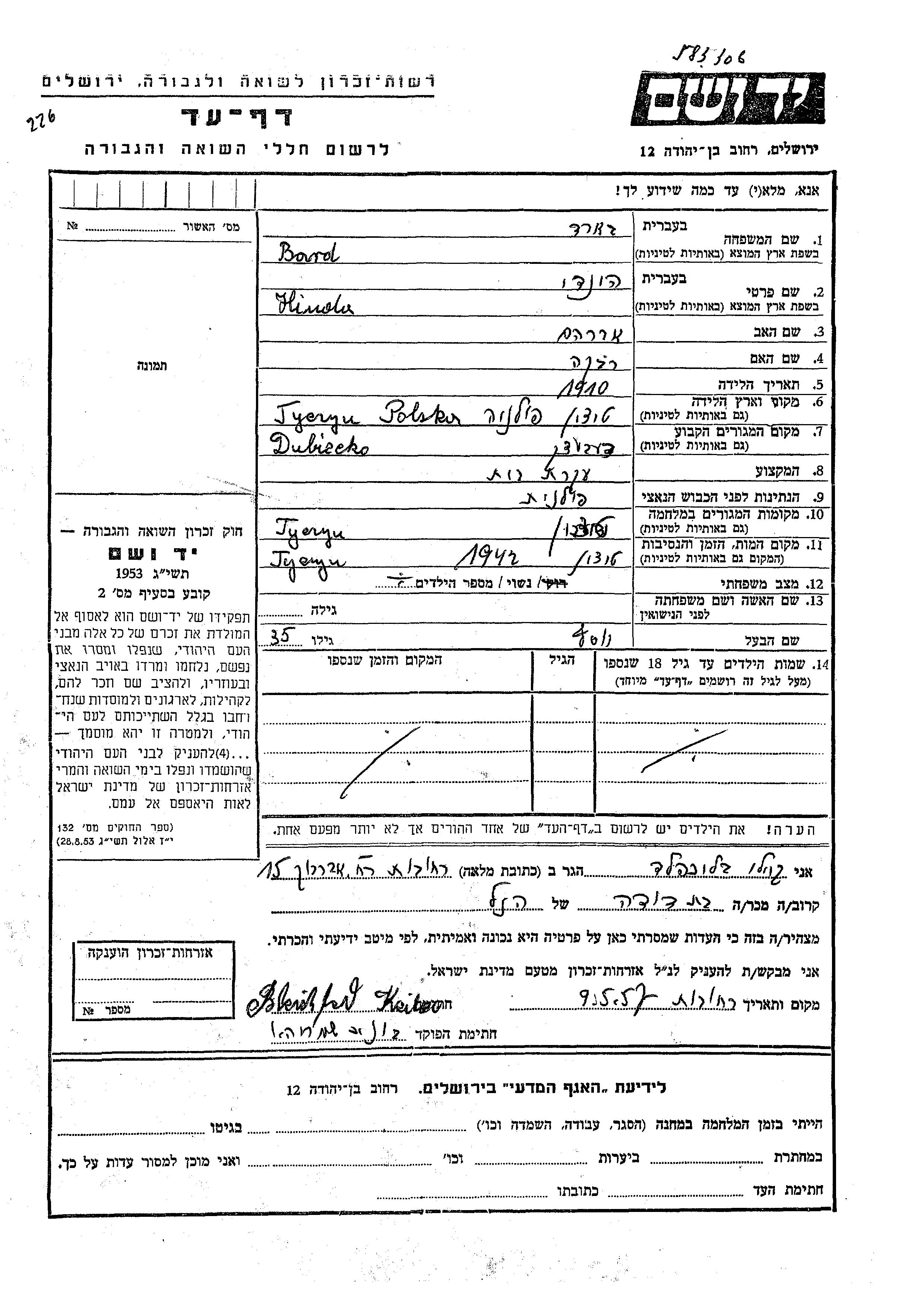 Hindi Bred wurde im Jahr 1910 in Tyczyn, Polen geboren. Sie war die Tochter von Avraham und Rivka. Sie war Hausfrau und mit Yosef Verheiratet. Vor dem Zweiten Weltkrieg lebte sie in Dubiecko, Polen. Während des Krieges war sie in Tyczyn, Polen.