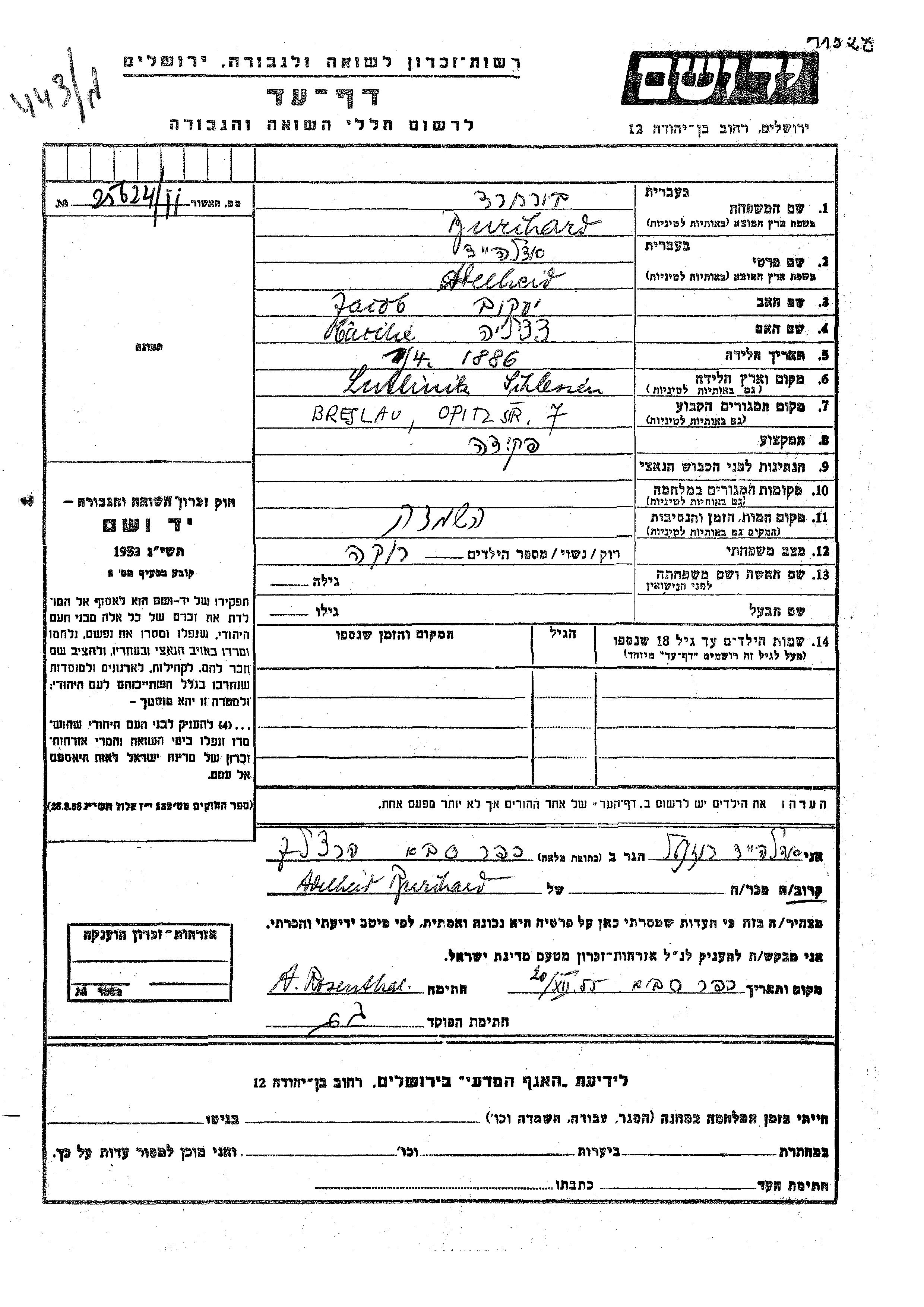 Suche nach einem Todesjahr im Zeitraum der Holocaust: 1933 bis 1945. Bitte wählen Sie 'Exakt' im Auswahlmenü, um nur nach einem einzelnen Jahr zu suchen, alternativ können Sie die flexibleren Optionen '+/- 2 Jahre' oder '+/- 5 Jahre' wählen.