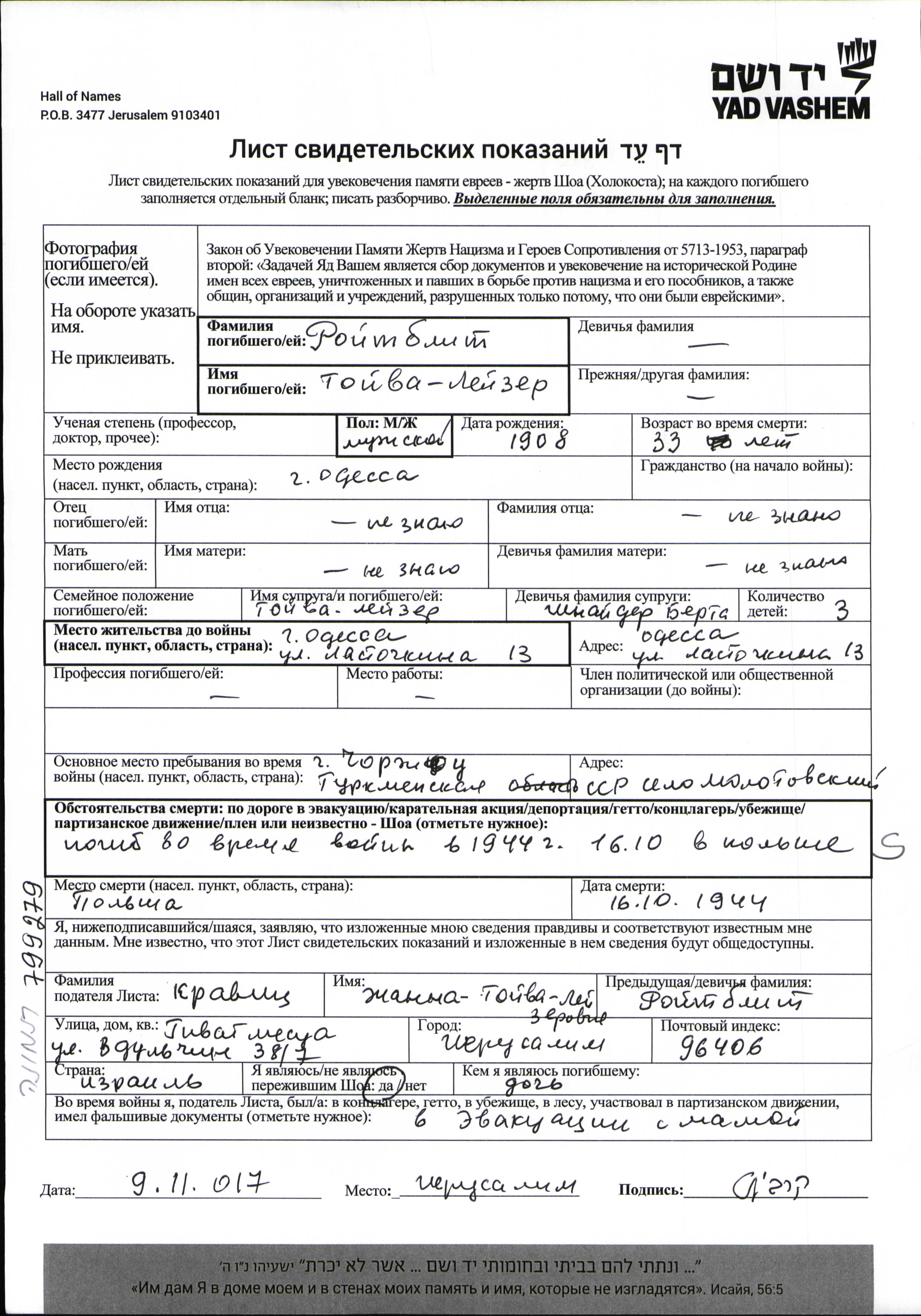 | Roytblit | Tuvya Leyzer | Odessa, Ukraine (UdSSR) | Gedenkblatt | |