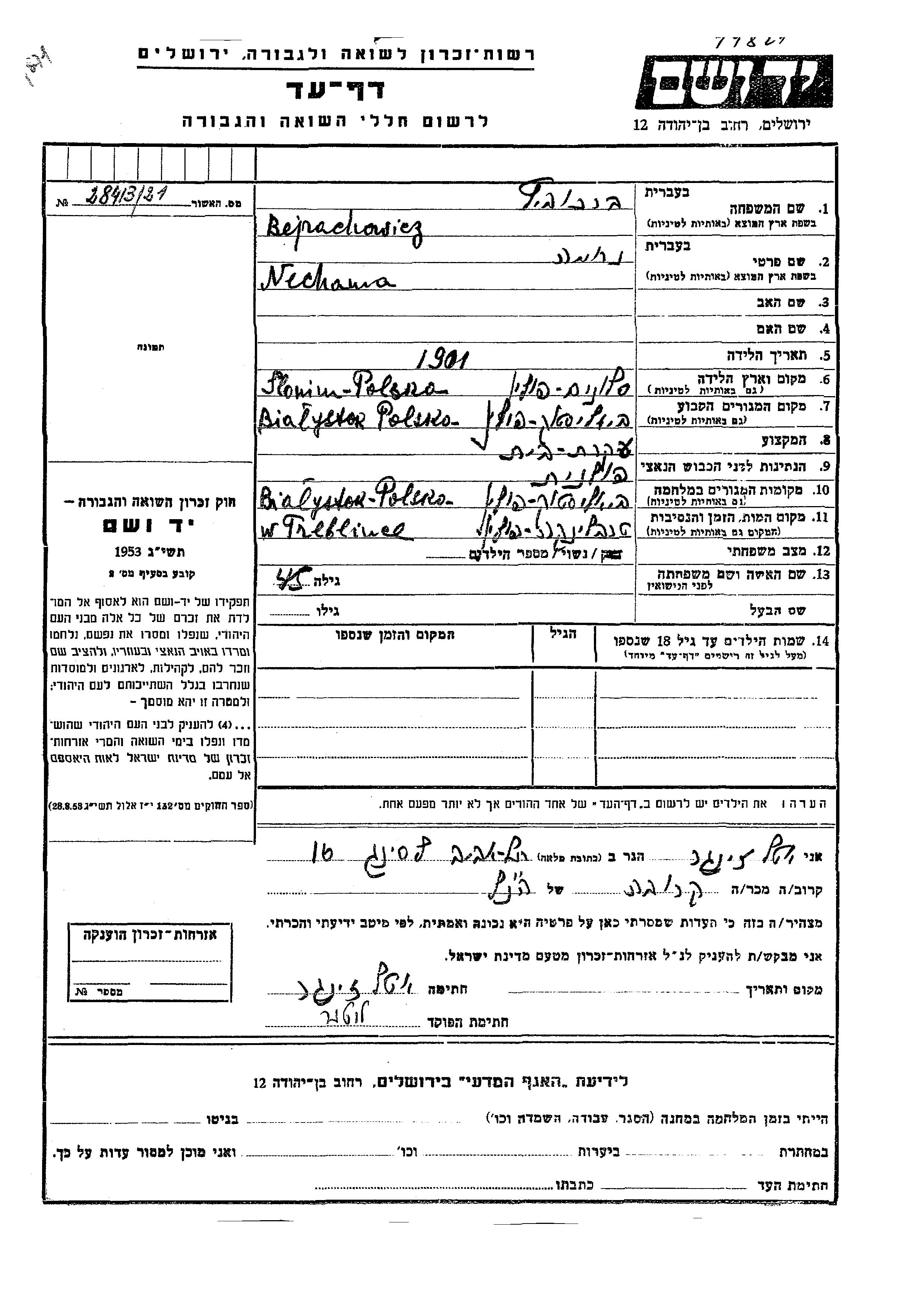Nechama wurde in der Schoah ermordet. Todesort: Treblinka, Polen.