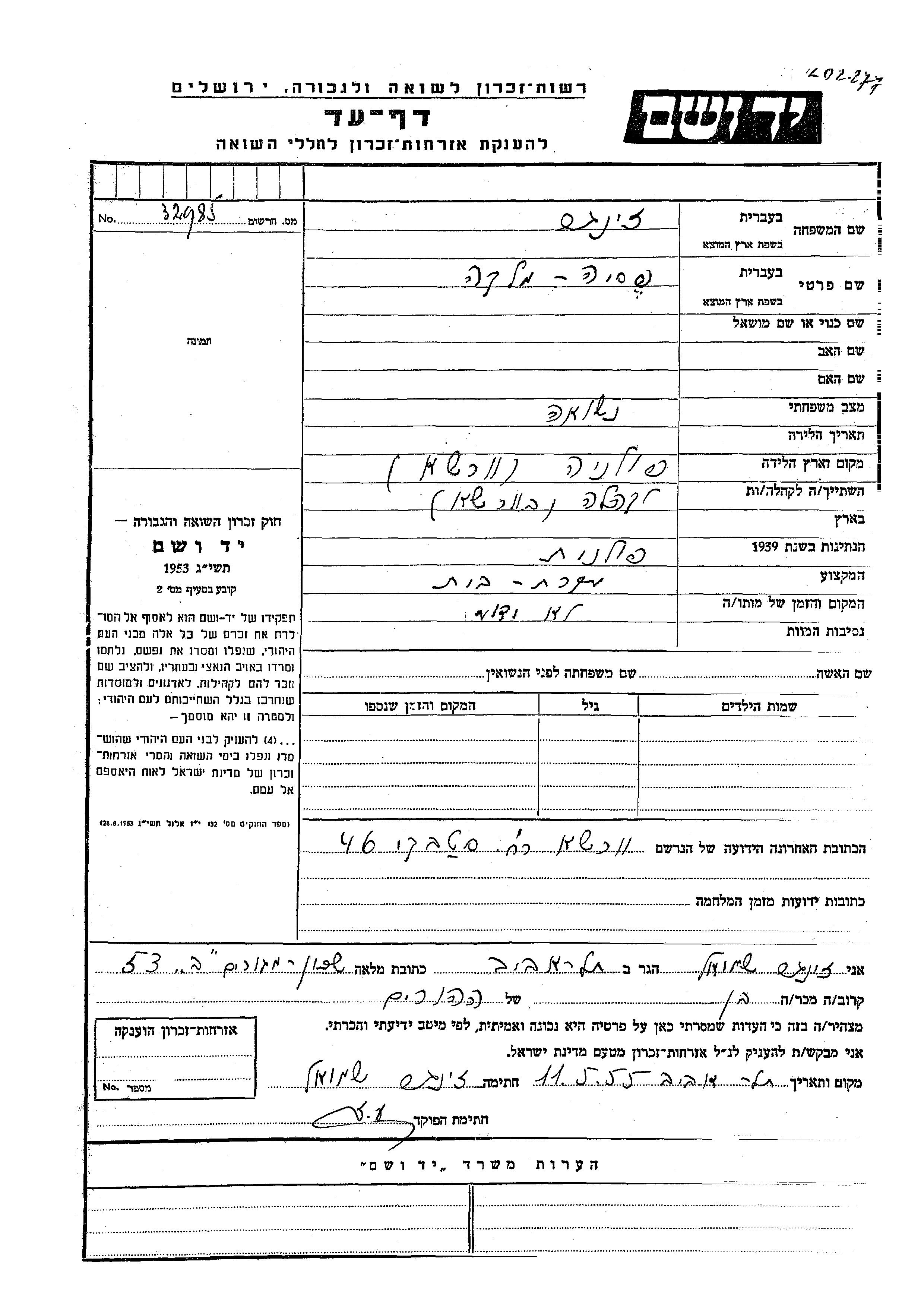 Zinger Pesia Malka unbekannter Ort, Gedenkblatt
