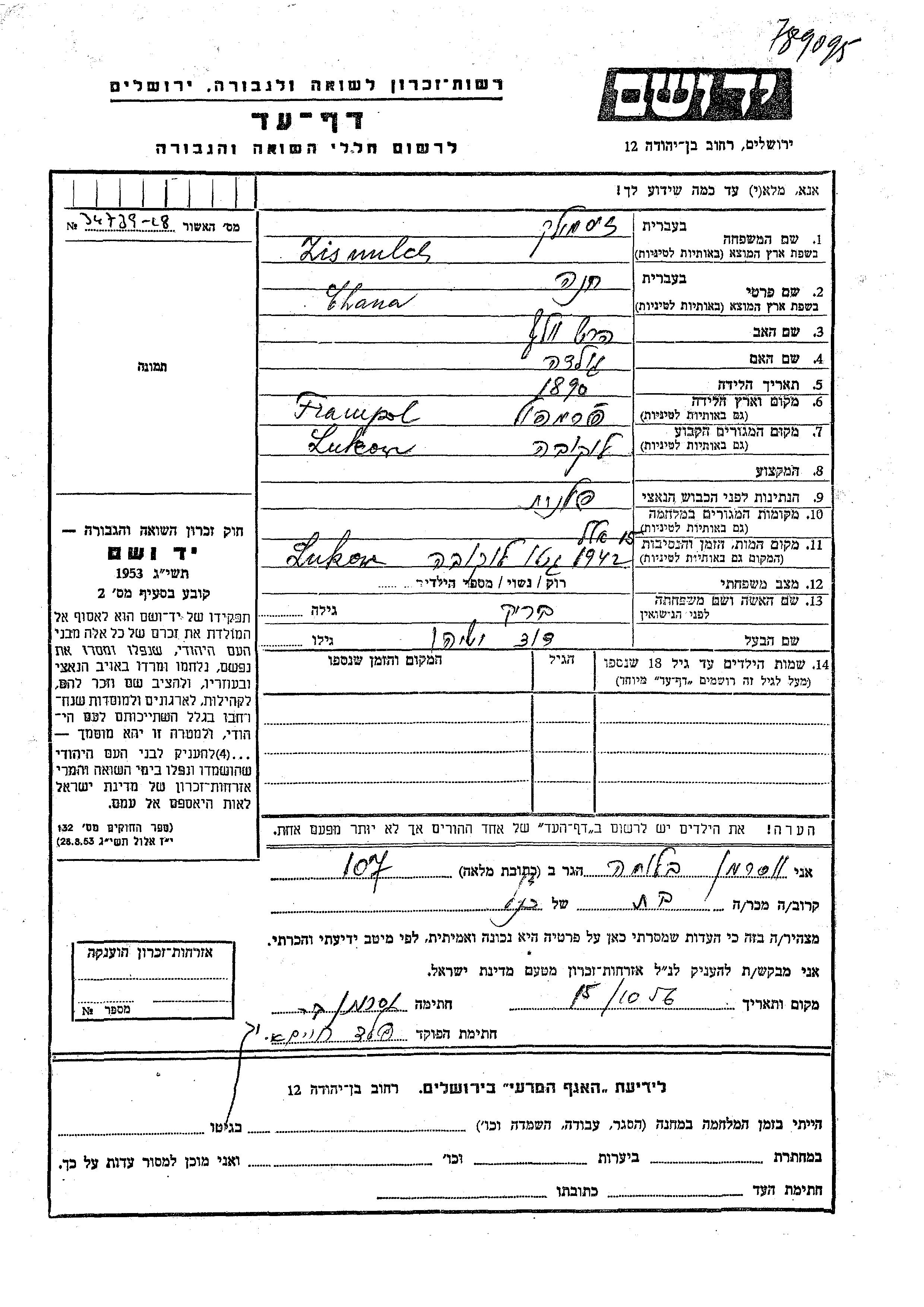 Chana wurde in der Schoah ermordet. Todesort: Lukow, Polen im Jahr 1942.