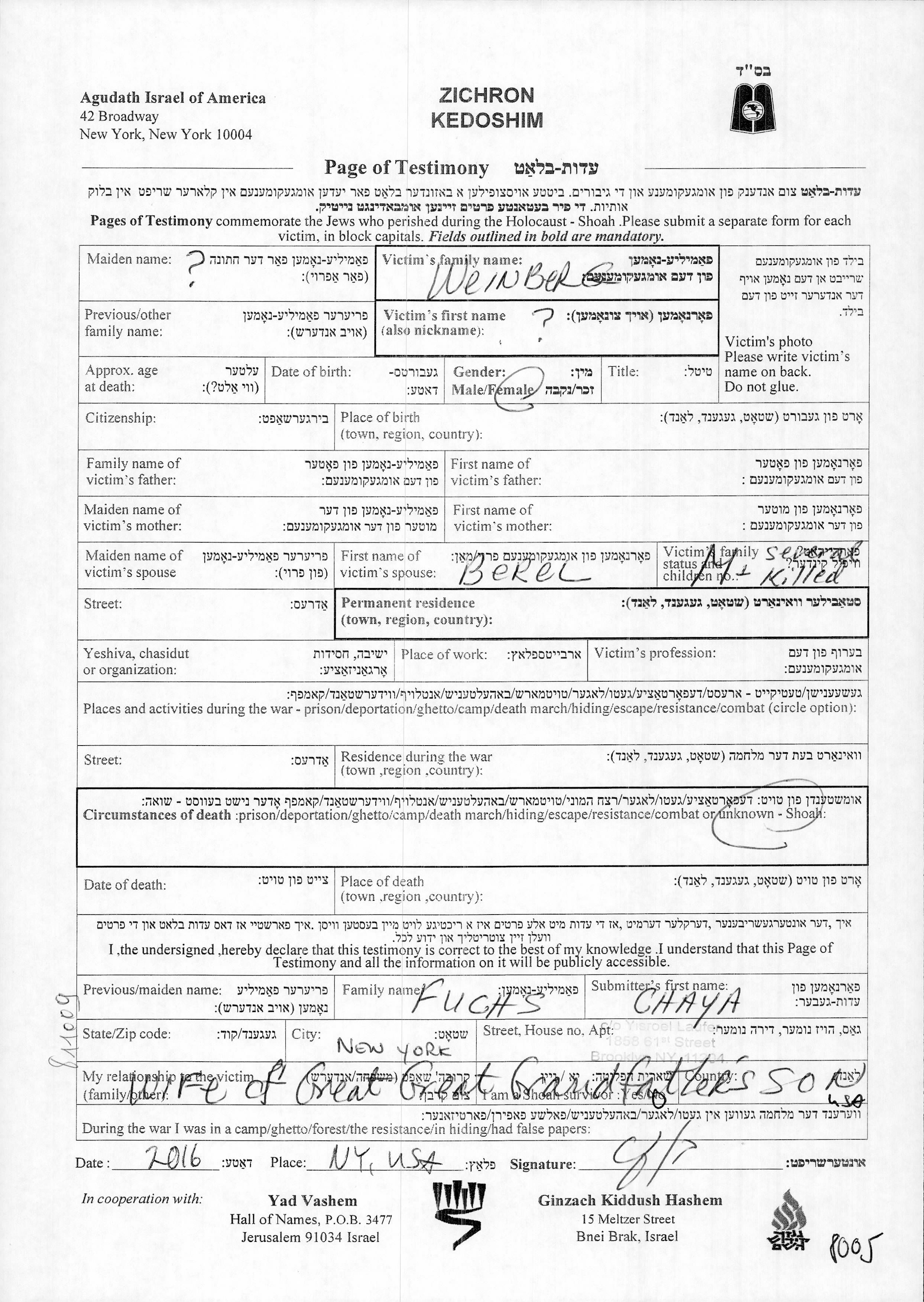 Vorname unbekannt Weinberg. Sie war mit Berel Verheiratet.