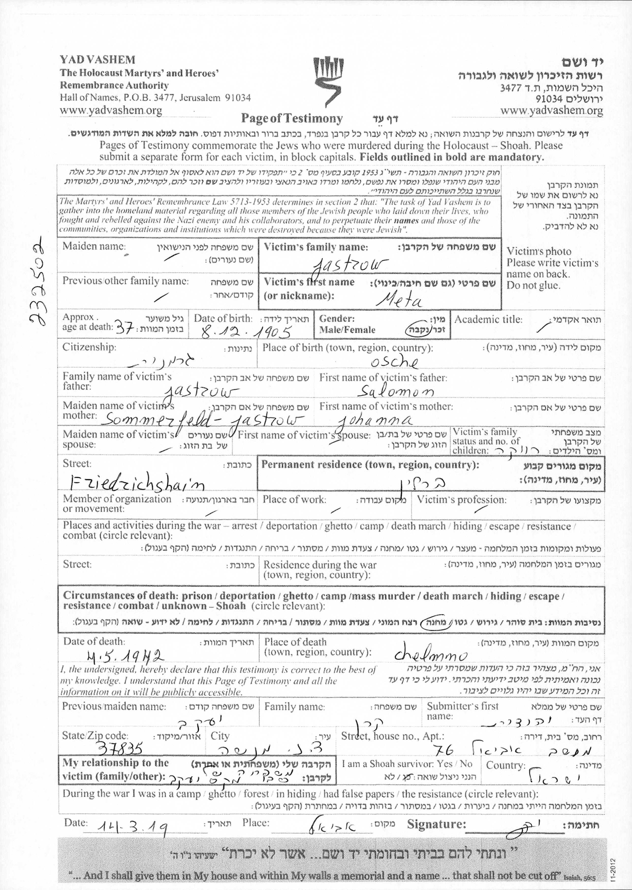 Suche nach einem Todesjahr im Zeitraum der Holocaust: 1933 bis 1945. Bitte wählen Sie 'Exakt' im Auswahlmenü, um nur nach einem einzelnen Jahr zu suchen, alternativ können Sie die flexibleren Optionen '+/- 2 Jahre' oder '+/- 5 Jahre' wählen.
