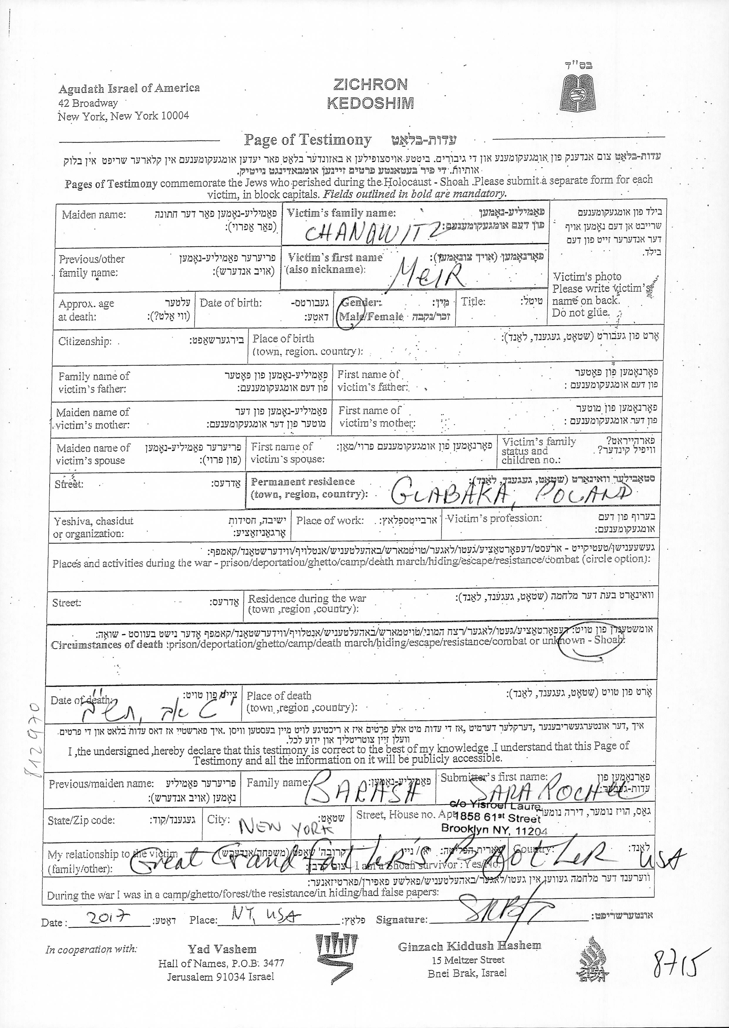 Meir Chanowitz. Vor dem Zweiten Weltkrieg lebte er in Golabki, Polen.
