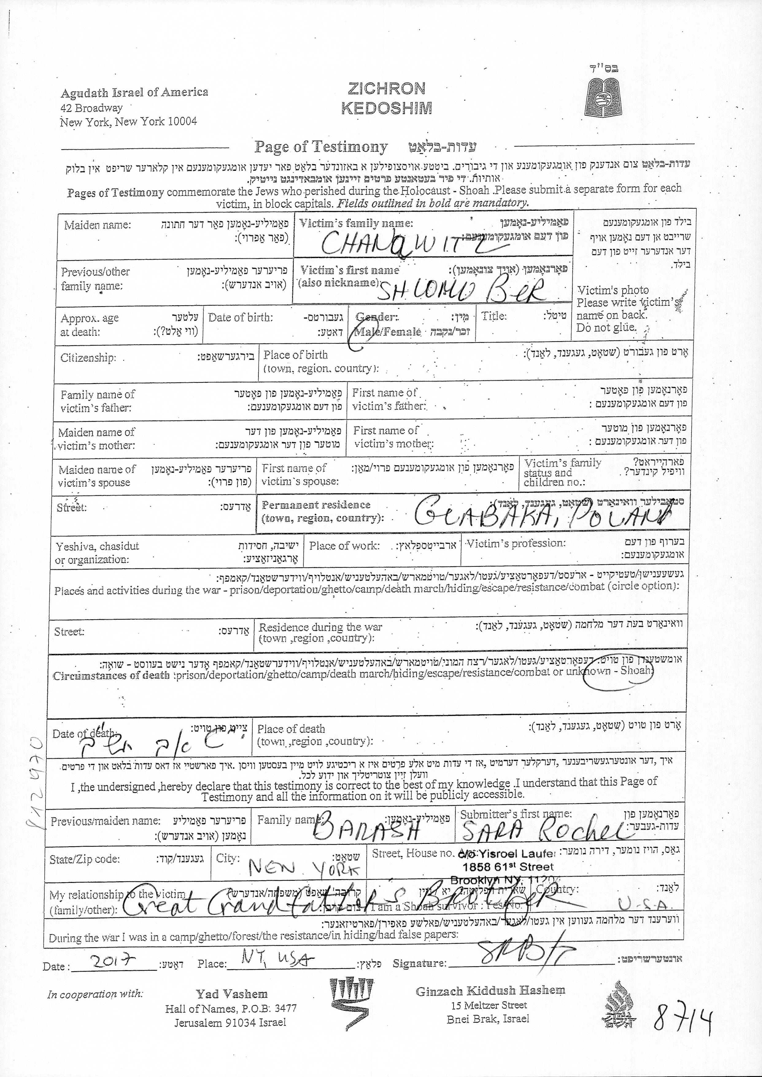 Shlomo Ber Chanowitz. Vor dem Zweiten Weltkrieg lebte er in Golabki, Polen.