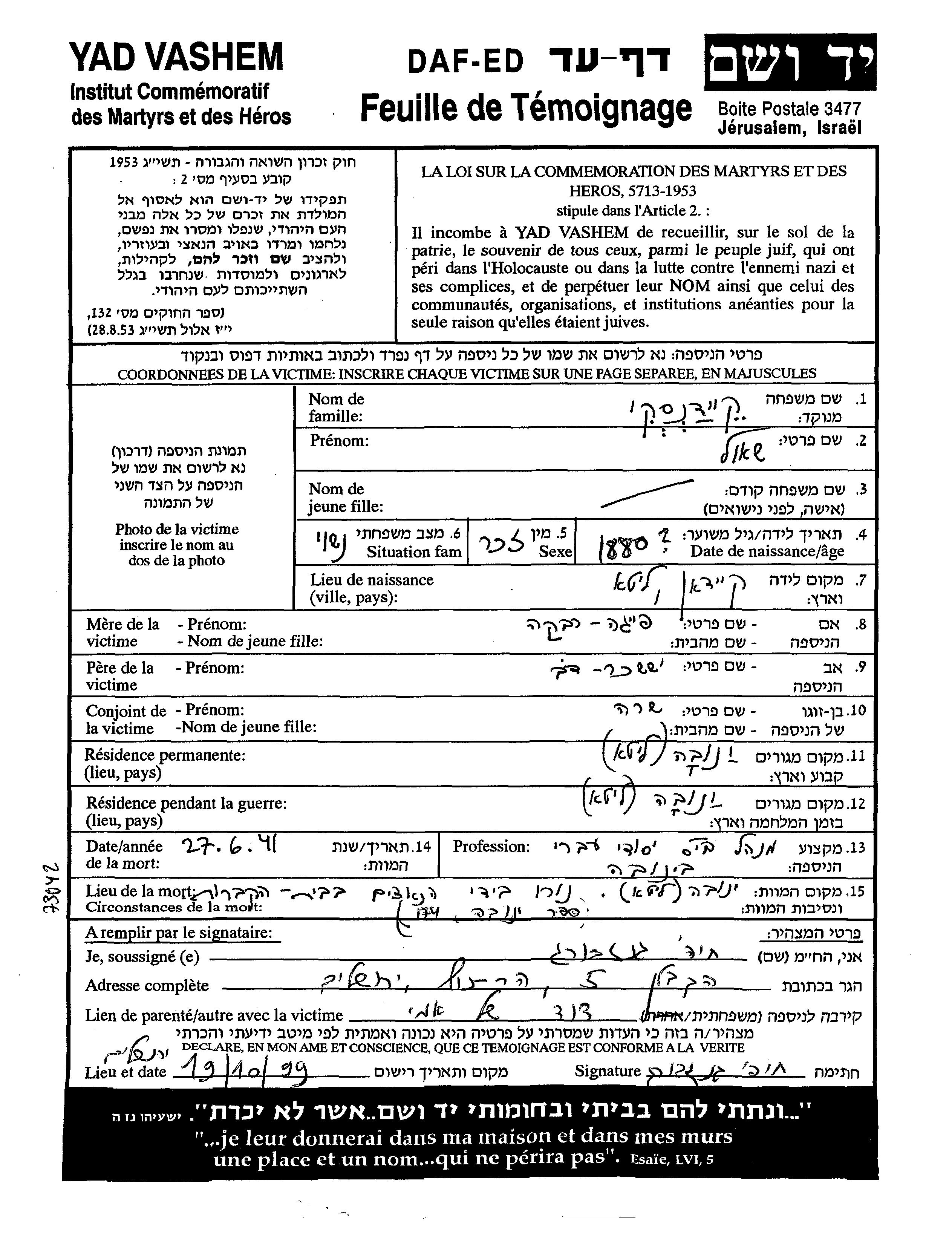 Shaul wurde in der Schoah ermordet. Todesort: Jonava, Litauen im Jahr 1941.