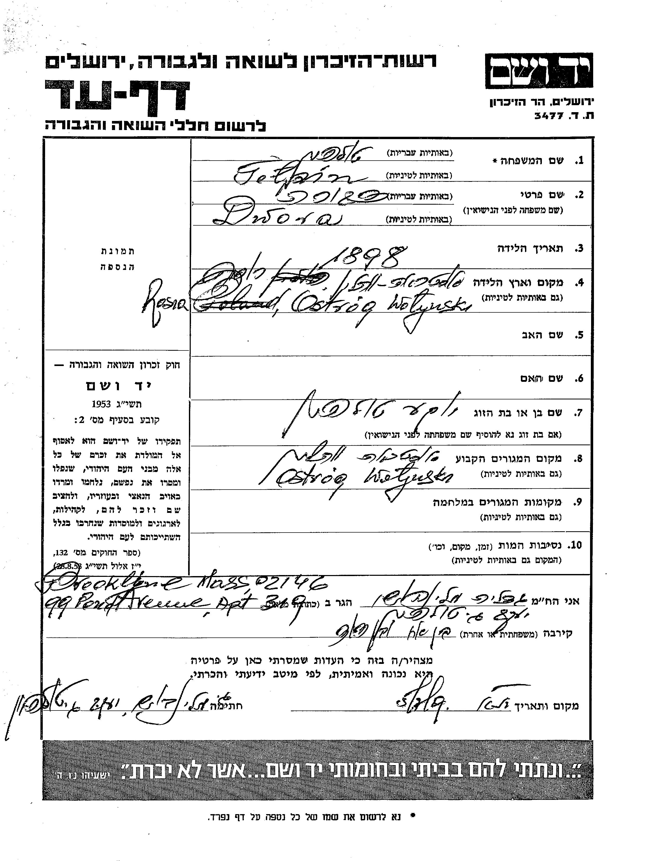 Gedalia Tolpin wurde im Jahr 1926 in Ostrog, Polen geboren. Vor dem Zweiten Weltkrieg lebte er in Ostrog, Polen.