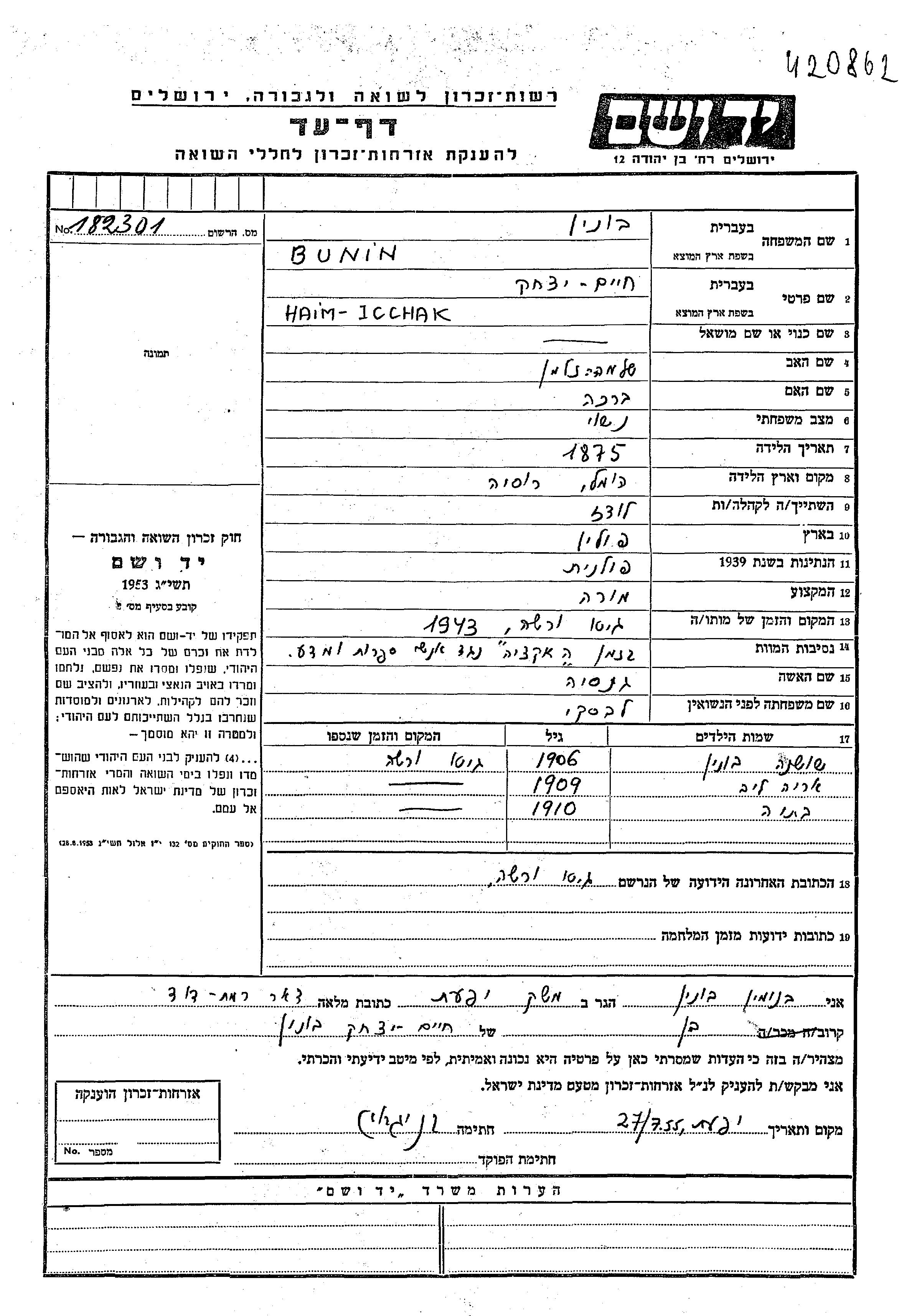 Suche nach einem Todesjahr im Zeitraum der Holocaust: 1933 bis 1945. Bitte wählen Sie 'Exakt' im Auswahlmenü, um nur nach einem einzelnen Jahr zu suchen, alternativ können Sie die flexibleren Optionen '+/- 2 Jahre' oder '+/- 5 Jahre' wählen.
