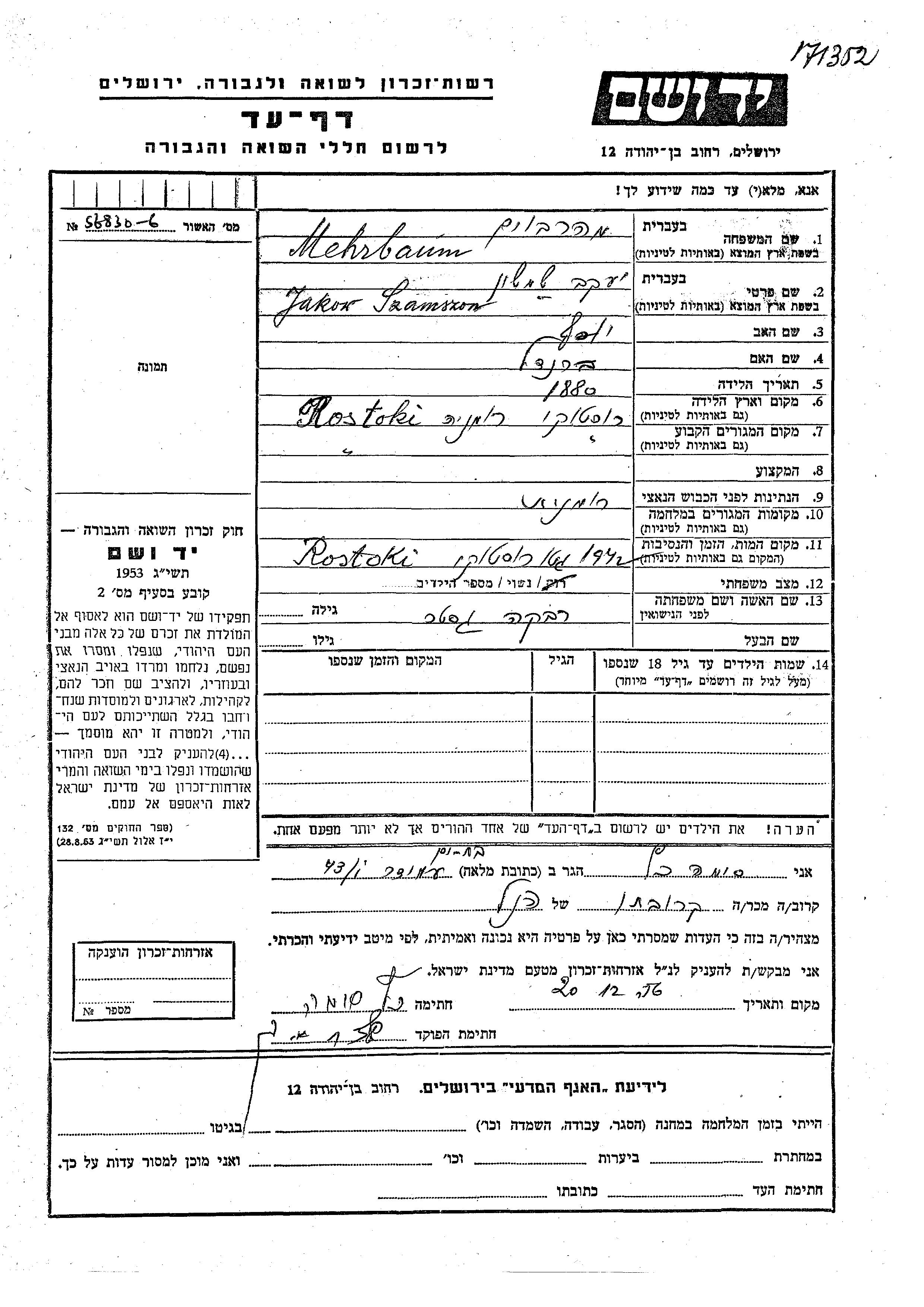 Merbaum | Schamschon Shimon | Rastoace, Rumänien | Gedenkblatt |