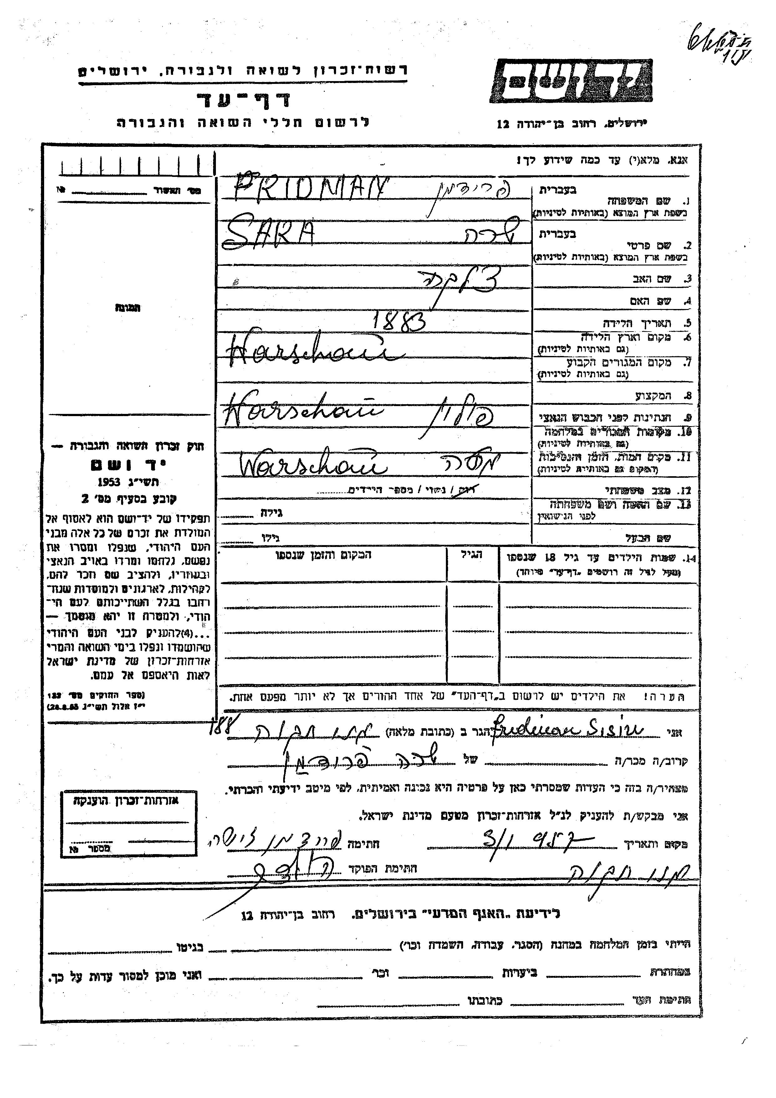 Sara wurde in der Schoah ermordet. Todesort: Warsaw, Polen.