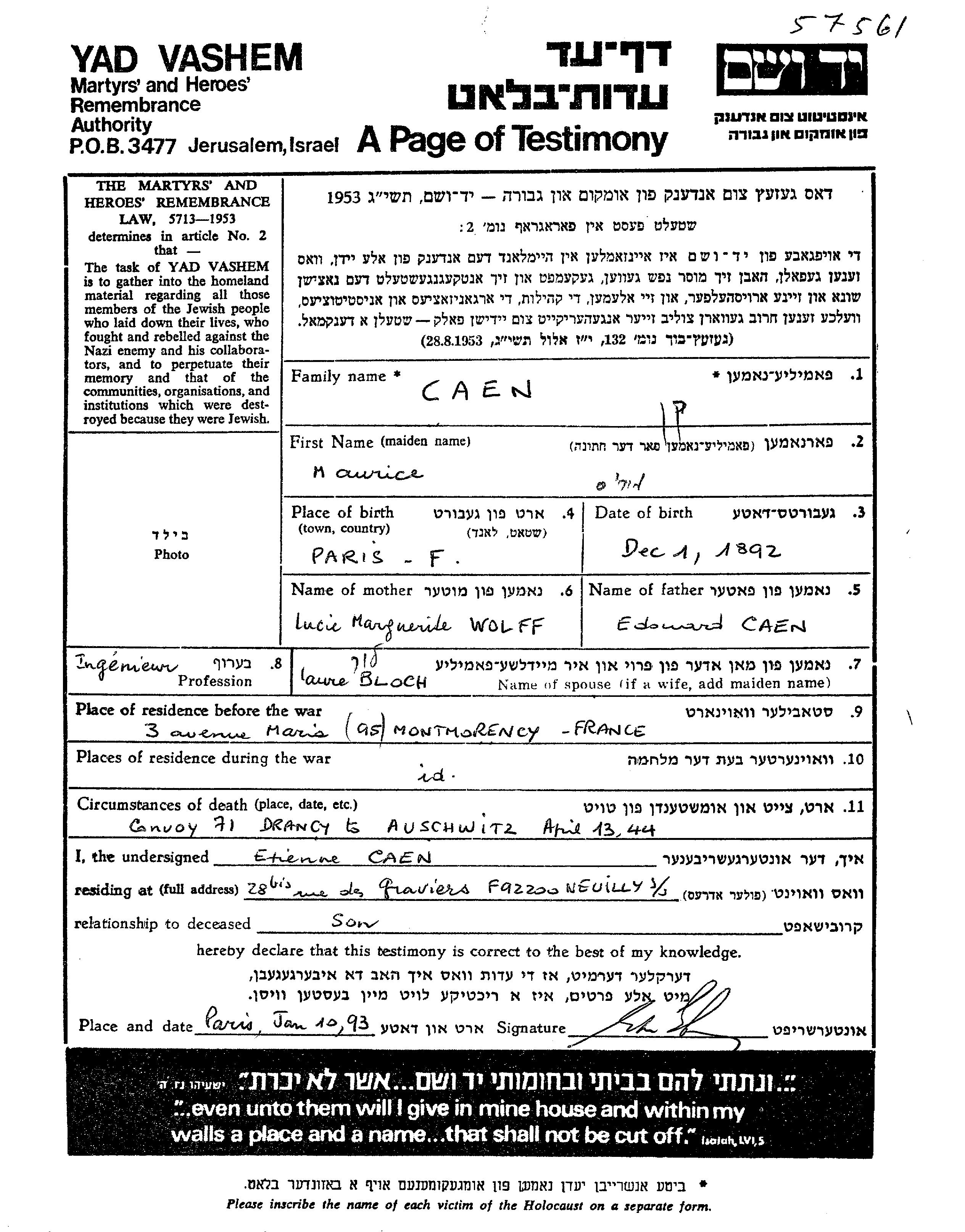 Caen Maurice 1892 Montmorency, Frankreich Verfolgtenliste