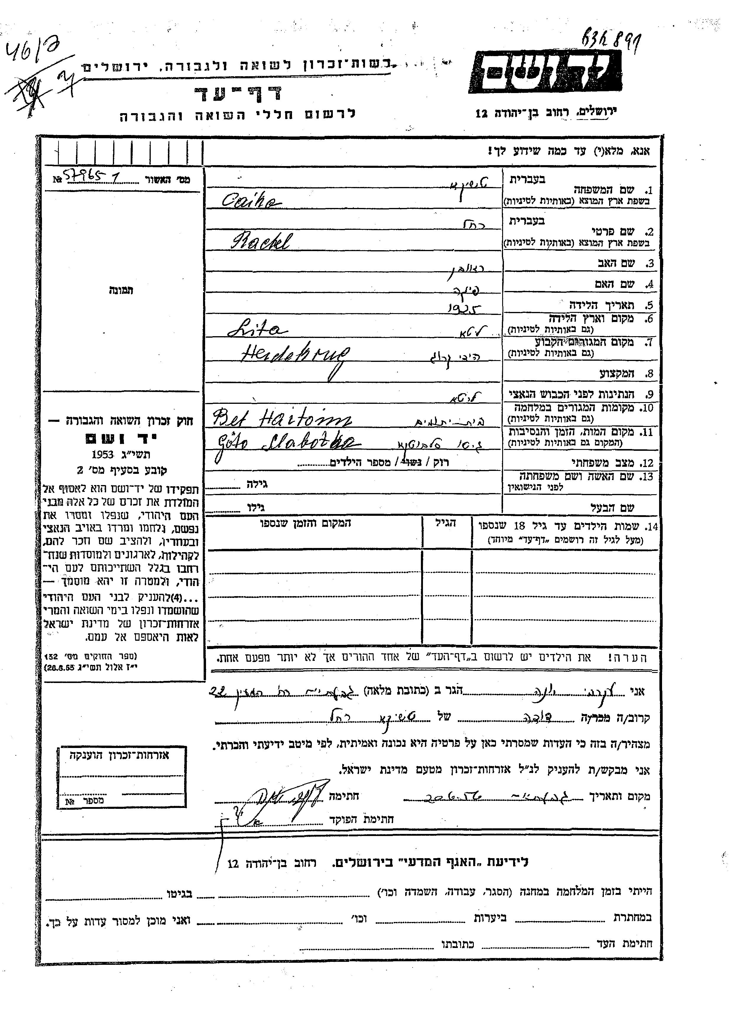 Rachel Caika wurde im Jahr 1925 in Litauen geboren. Sie war die Tochter von Reuven und Feiga. Sie war Ledig. Vor dem Zweiten Weltkrieg lebte sie in Heidekrug, Litauen.