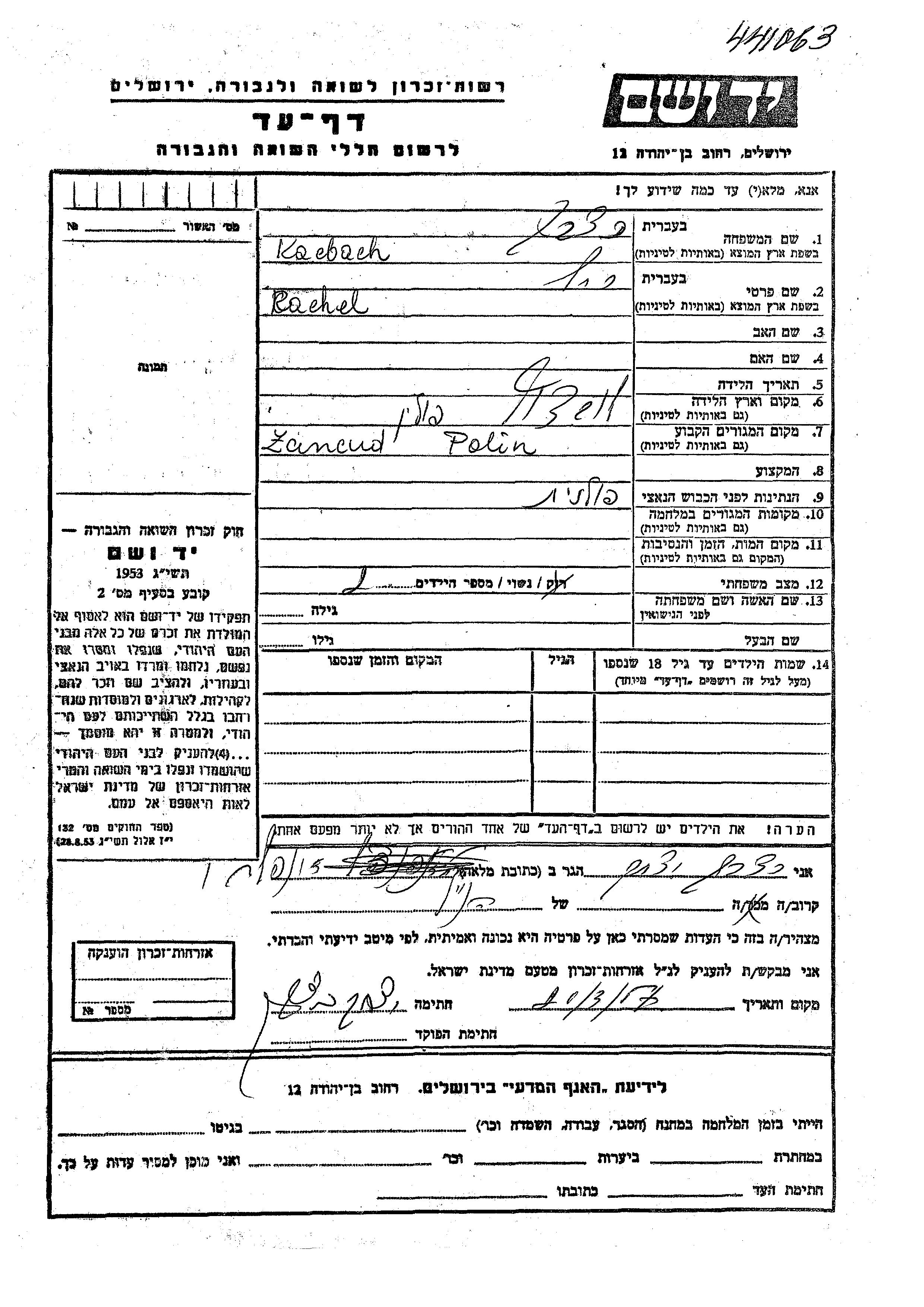 Rachel Kacbach wurde in Lubaczow, Polen geboren. Sie war Verheiratet. Vor dem Zweiten Weltkrieg lebte sie in Lancut, Polen.