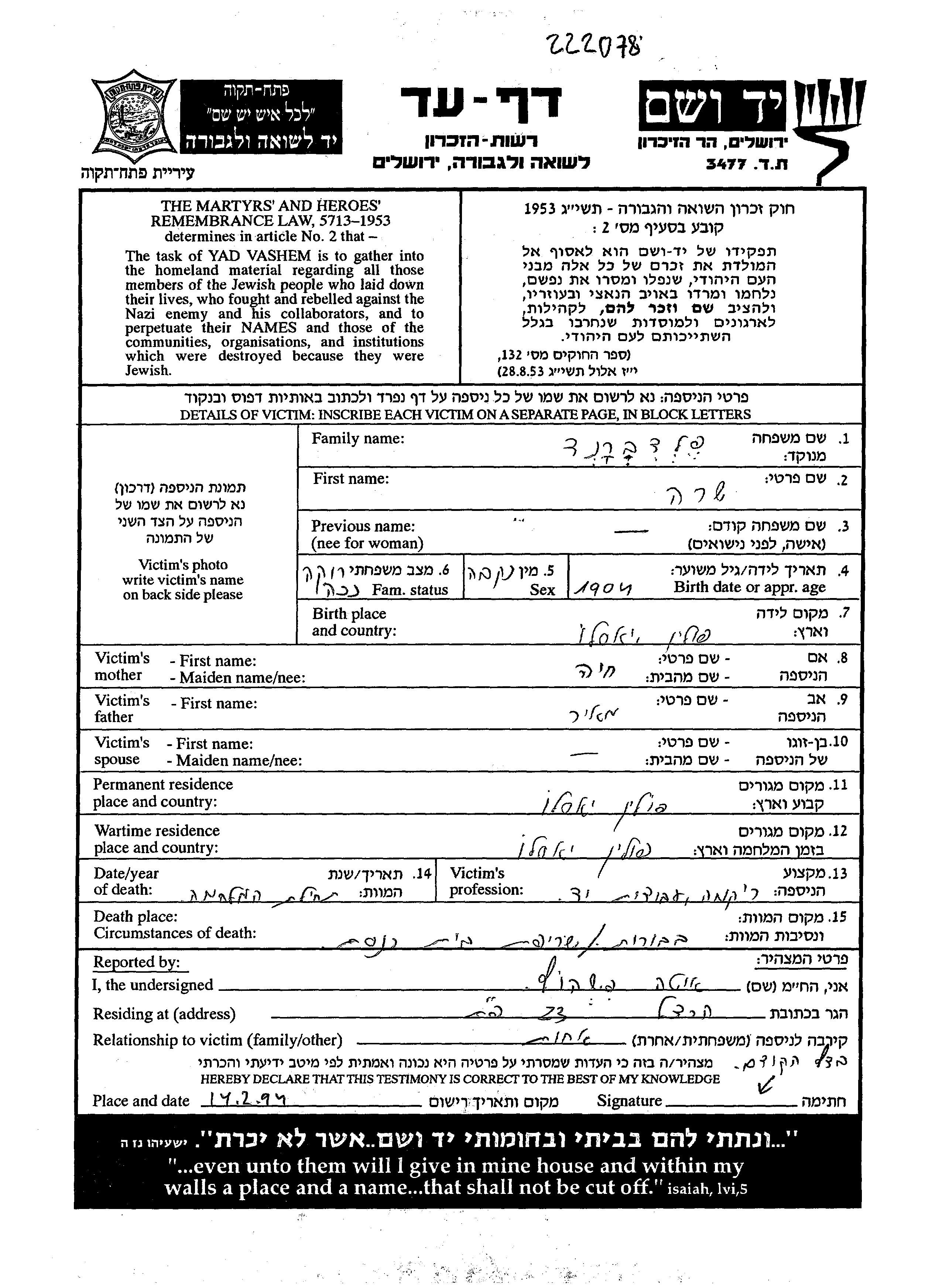 Suche nach einem Todesjahr im Zeitraum der Holocaust: 1933 bis 1945. Bitte wählen Sie 'Exakt' im Auswahlmenü, um nur nach einem einzelnen Jahr zu suchen, alternativ können Sie die flexibleren Optionen '+/- 2 Jahre' oder '+/- 5 Jahre' wählen.