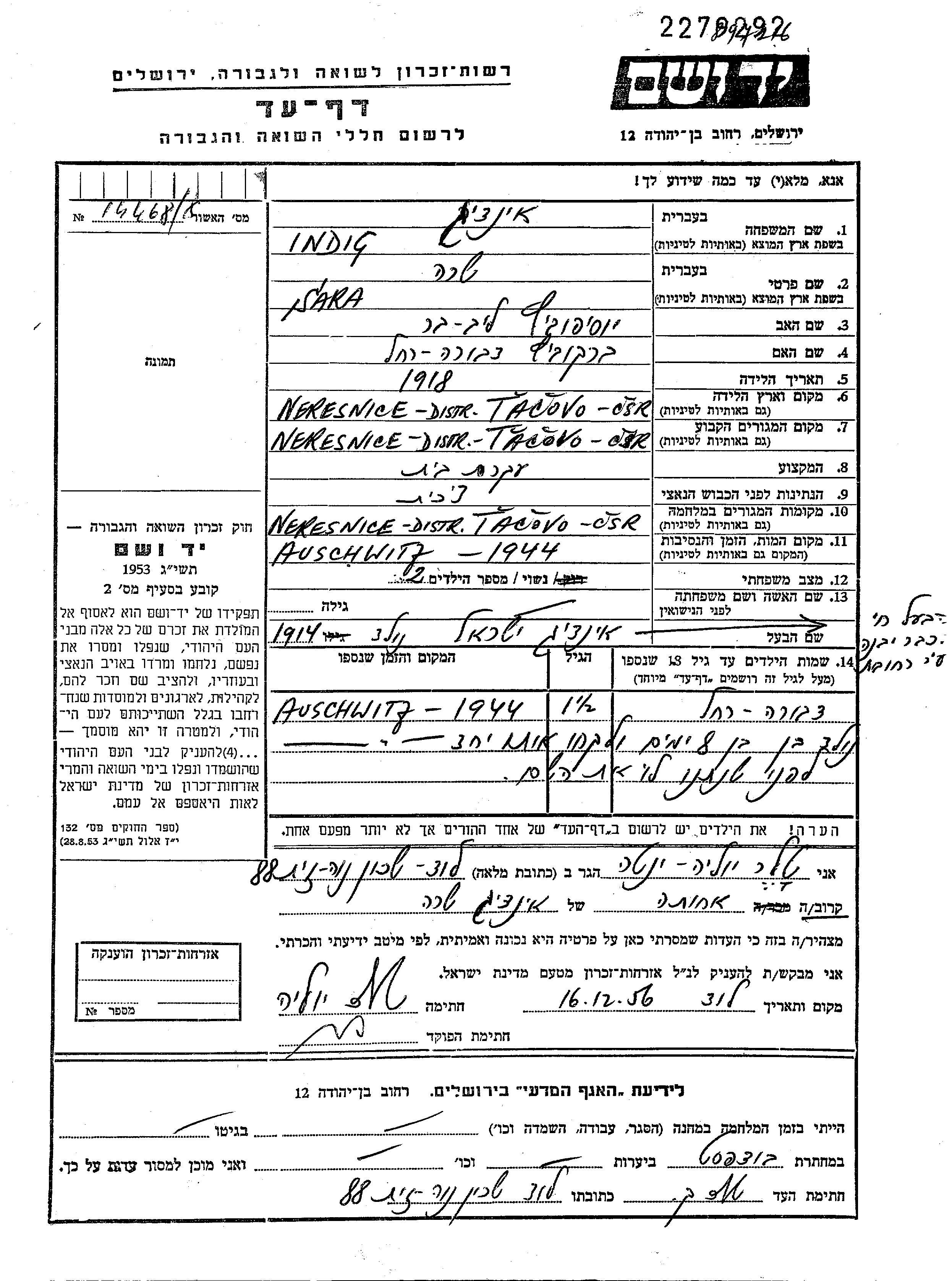 Suche nach einem Todesjahr im Zeitraum der Holocaust: 1933 bis 1945. Bitte wählen Sie 'Exakt' im Auswahlmenü, um nur nach einem einzelnen Jahr zu suchen, alternativ können Sie die flexibleren Optionen '+/- 2 Jahre' oder '+/- 5 Jahre' wählen.