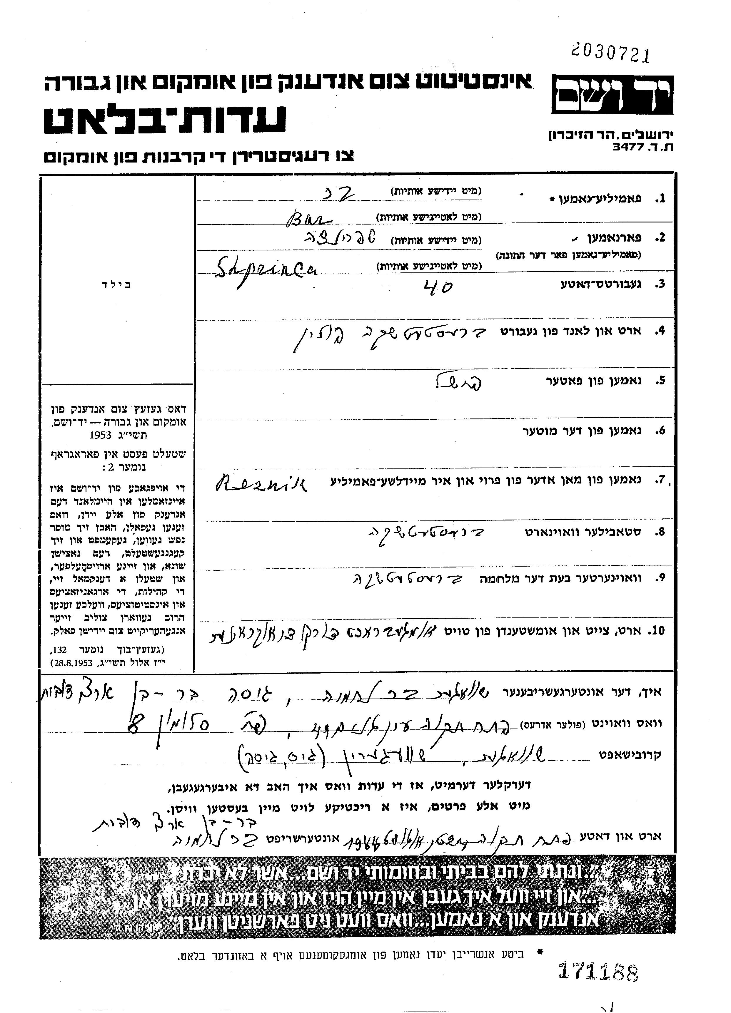 Ber | Shprinca | Beresteczko, Polen | Gedenkblatt | |