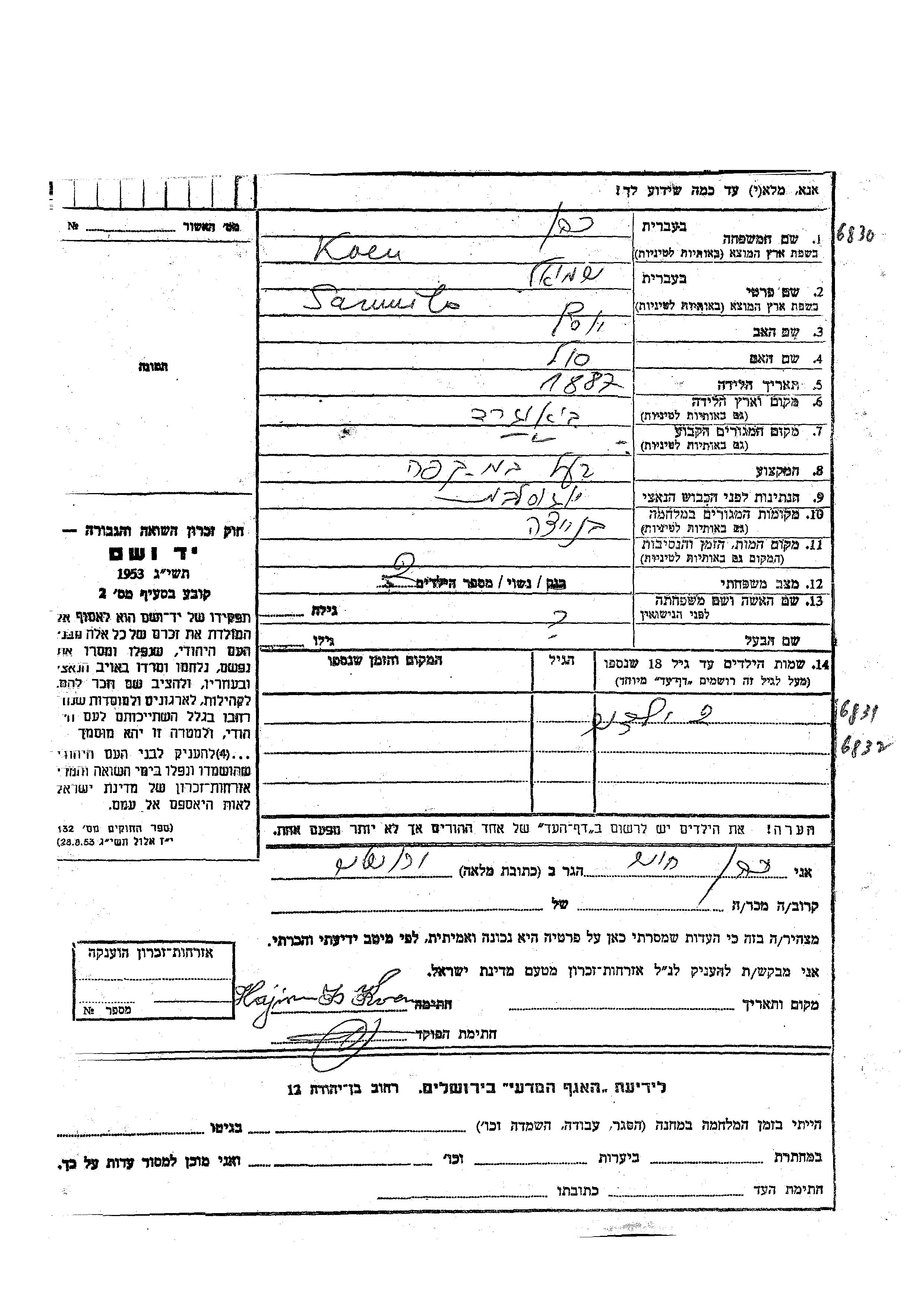 Shmuel Kohen wurde im Jahr 1887 in Beograd, Jugoslawien geboren. Vor dem Zweiten Weltkrieg lebte er in Beograd, Jugoslawien.