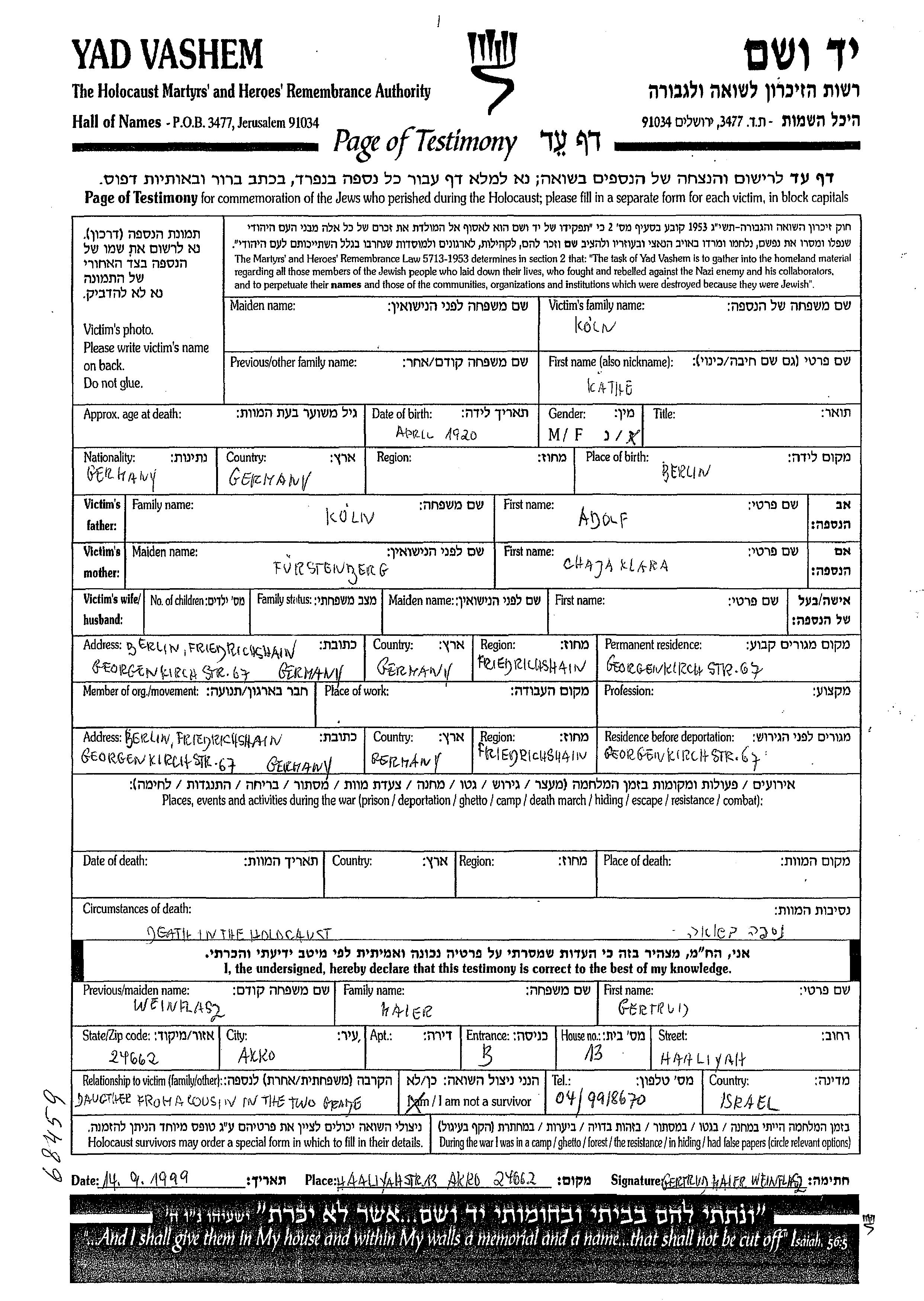 Kathe T423712 wurde im Jahr 1920 in Berlin, Deutsches Reich geboren. Vor dem Zweiten Weltkrieg lebte sie in Berlin, Deutsches Reich.