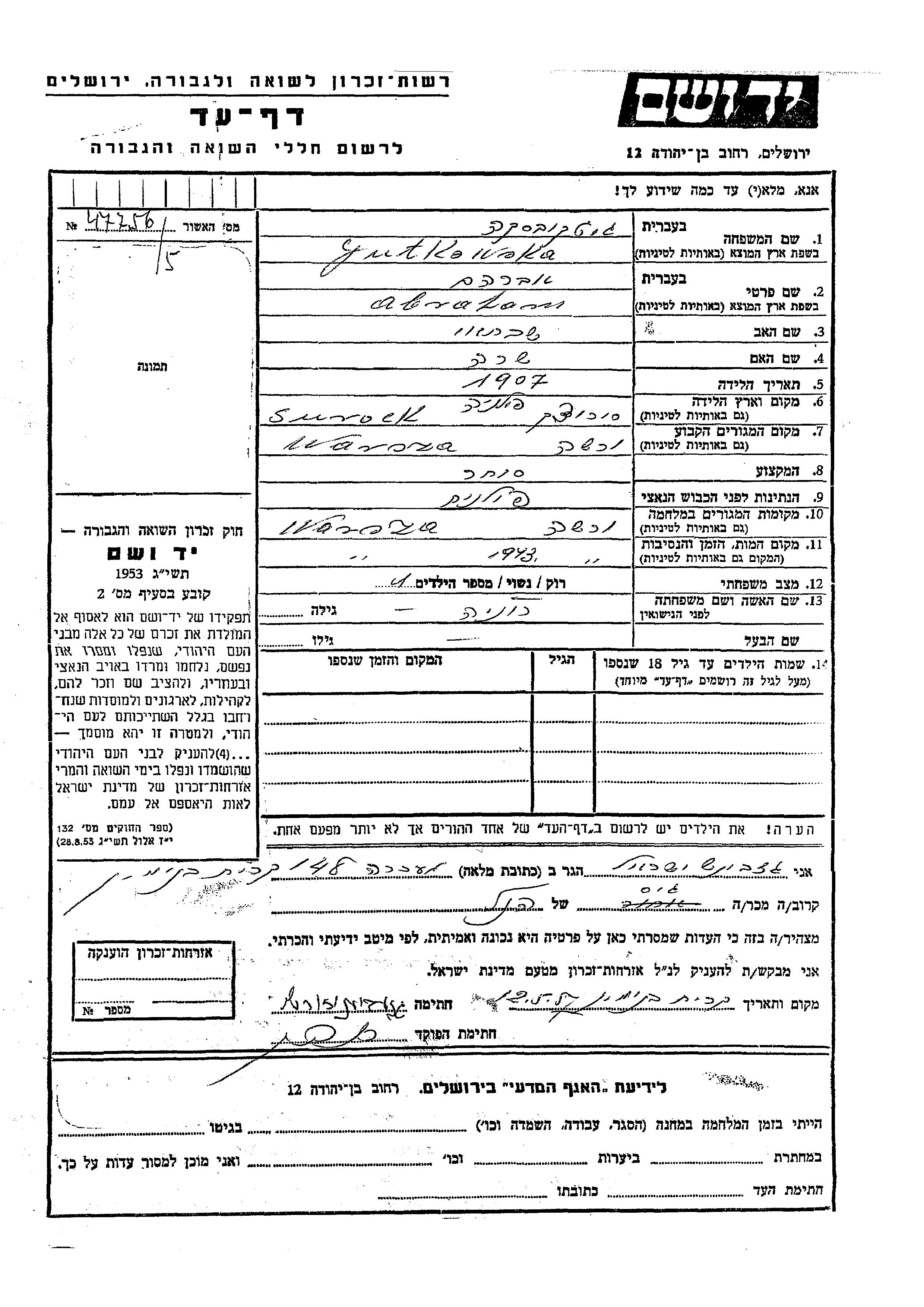 Suche nach einem Todesjahr im Zeitraum der Holocaust: 1933 bis 1945. Bitte wählen Sie 'Exakt' im Auswahlmenü, um nur nach einem einzelnen Jahr zu suchen, alternativ können Sie die flexibleren Optionen '+/- 2 Jahre' oder '+/- 5 Jahre' wählen.