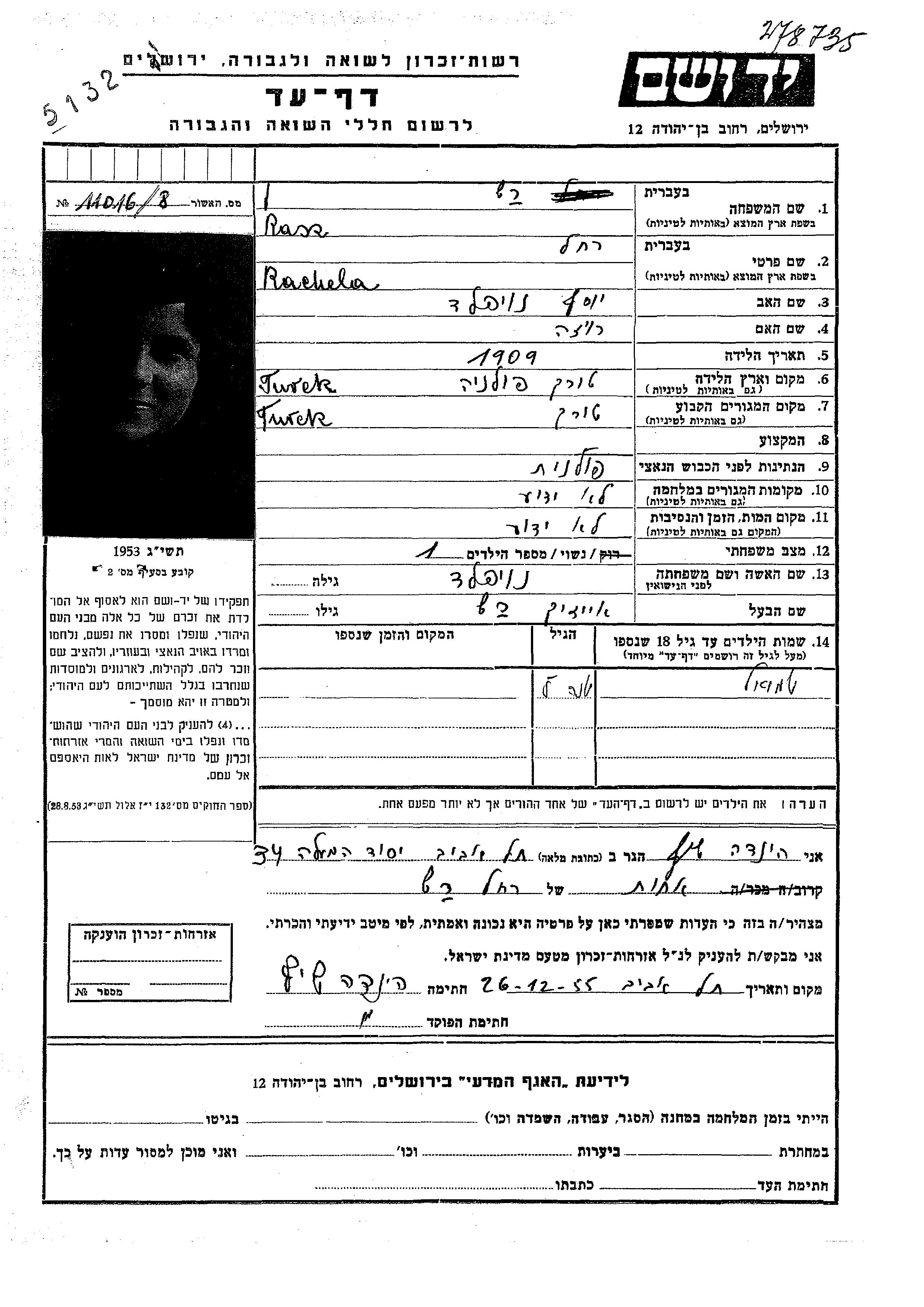 Rakhel wurde in der Schoah ermordet. Todesort: Chelmno, Polen im Jahr 1942.