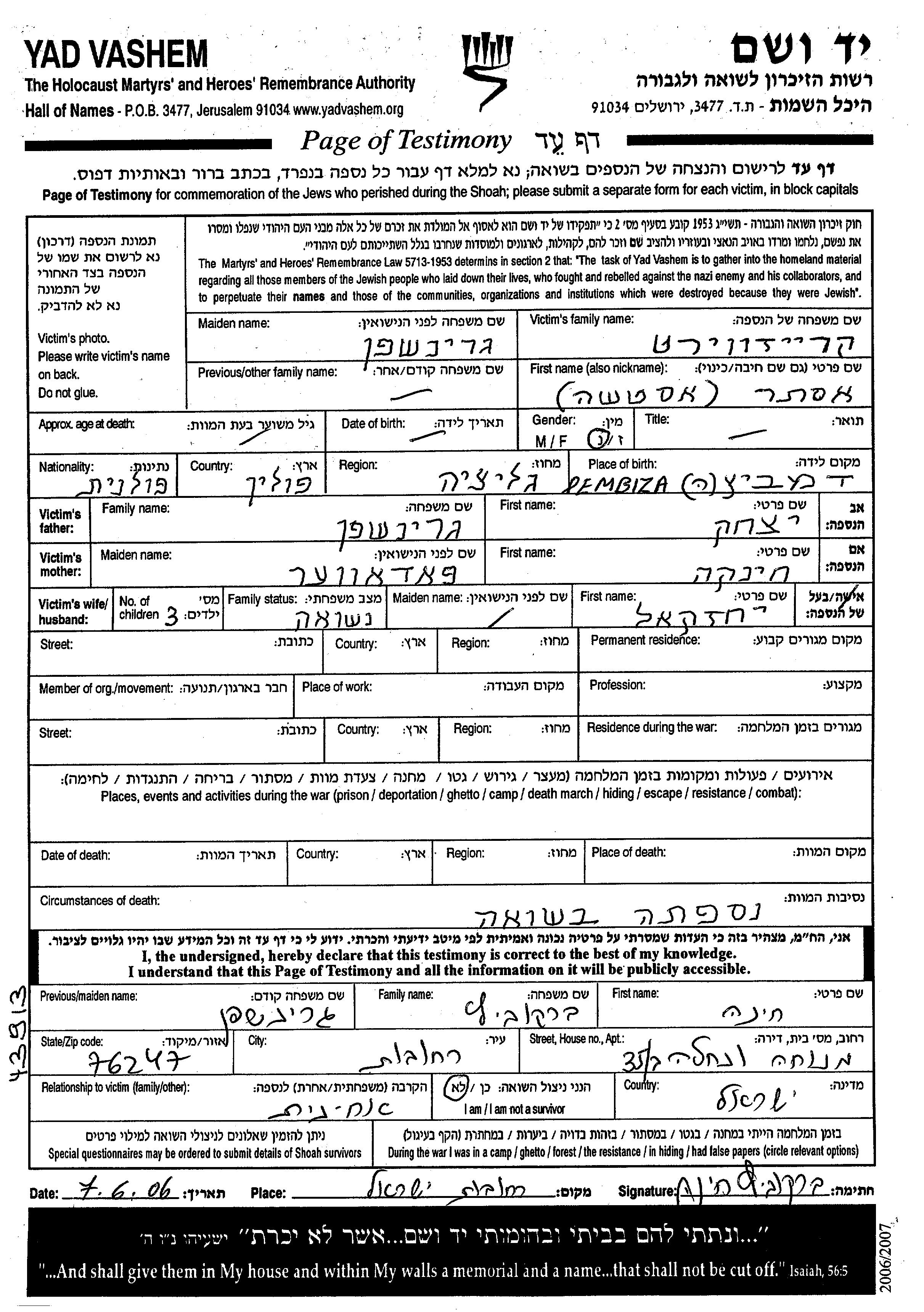 Stadt/Ortschaft oder Lager/Ghetto oder Bezirk/Region oder Land