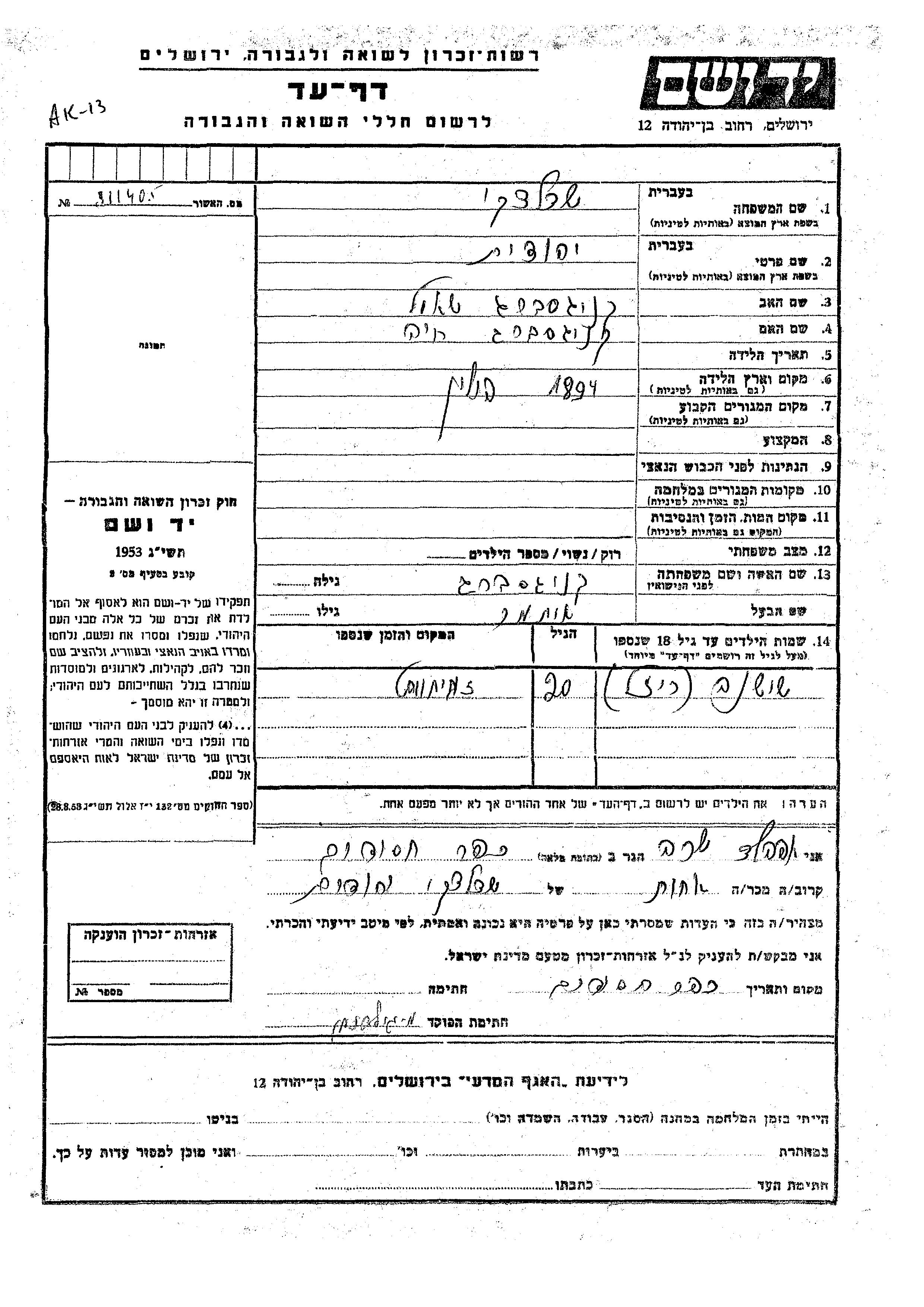 Yehudit wurde in der Schoah ermordet. Todesort: unbekannter Ort.