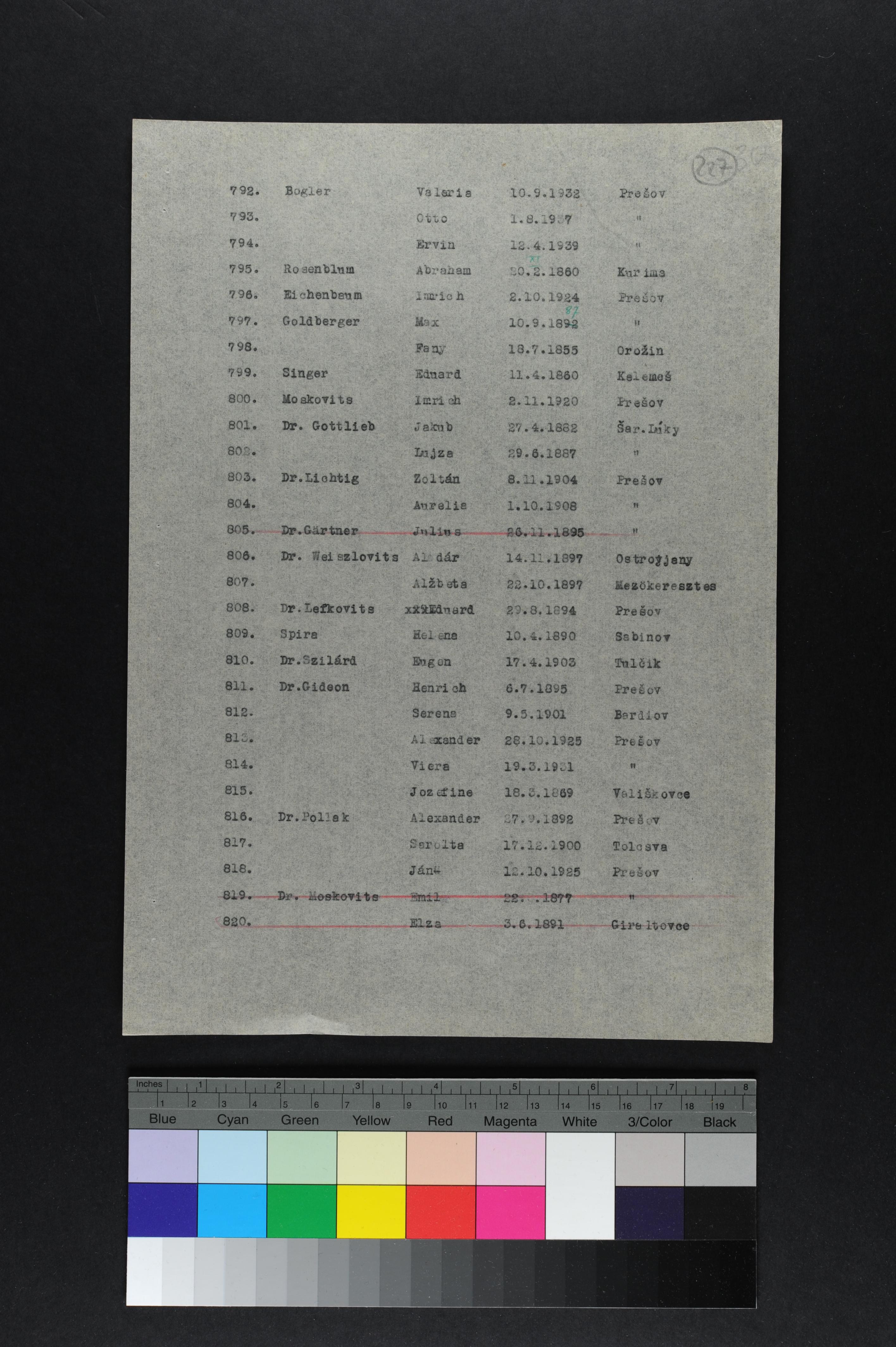 Gottlieb Jakub 1882 Presov, Tschechoslowakei Verfolgtenliste