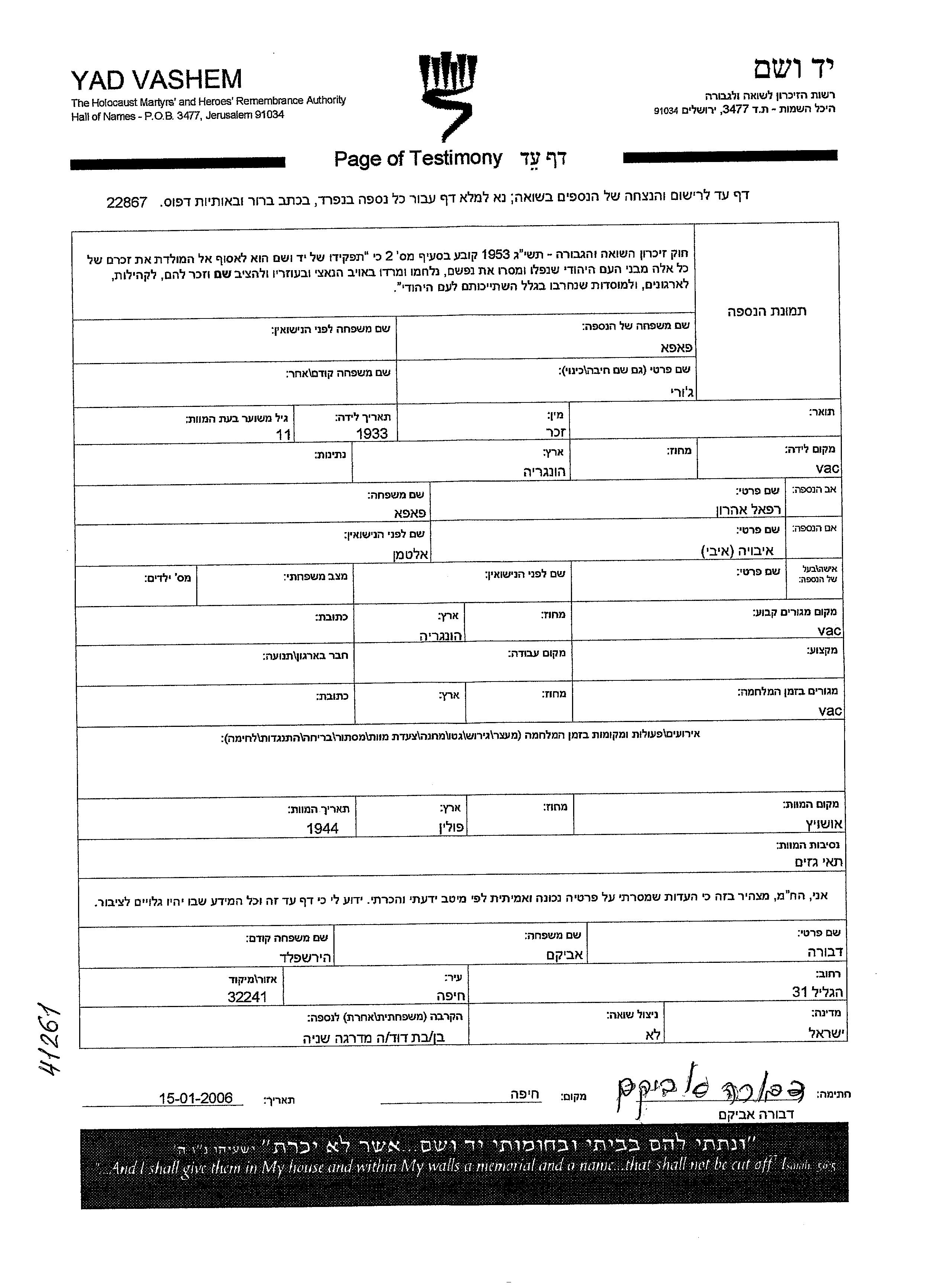 Gyuri wurde in der Schoah ermordet. Todesort: Auschwitz, Polen im Jahr 1944.