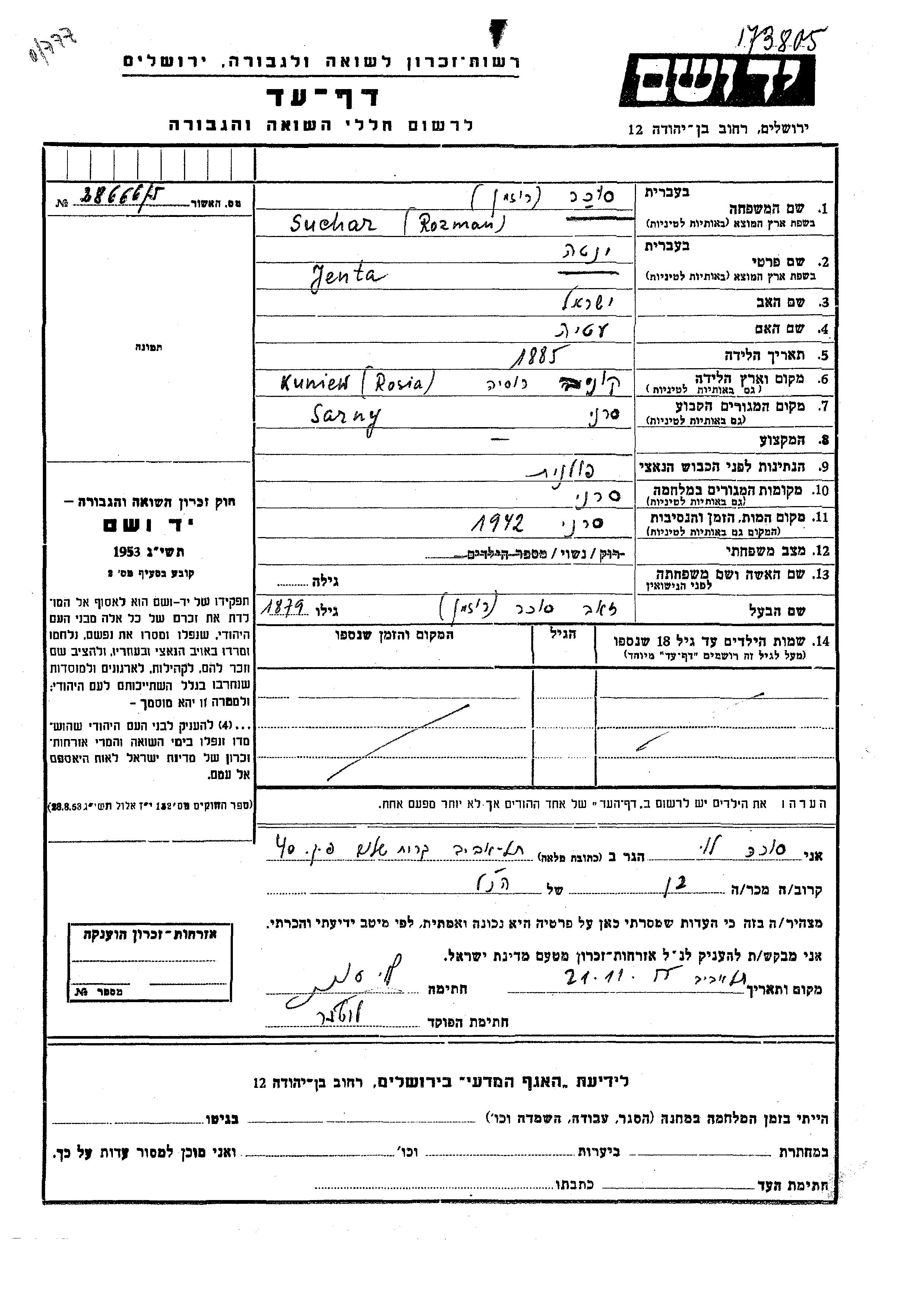 רוזמאן Sukhar Yenta Sarny, Polen Liste ermordeter Juden aus Gedenkbuechern (Yizkor Books)