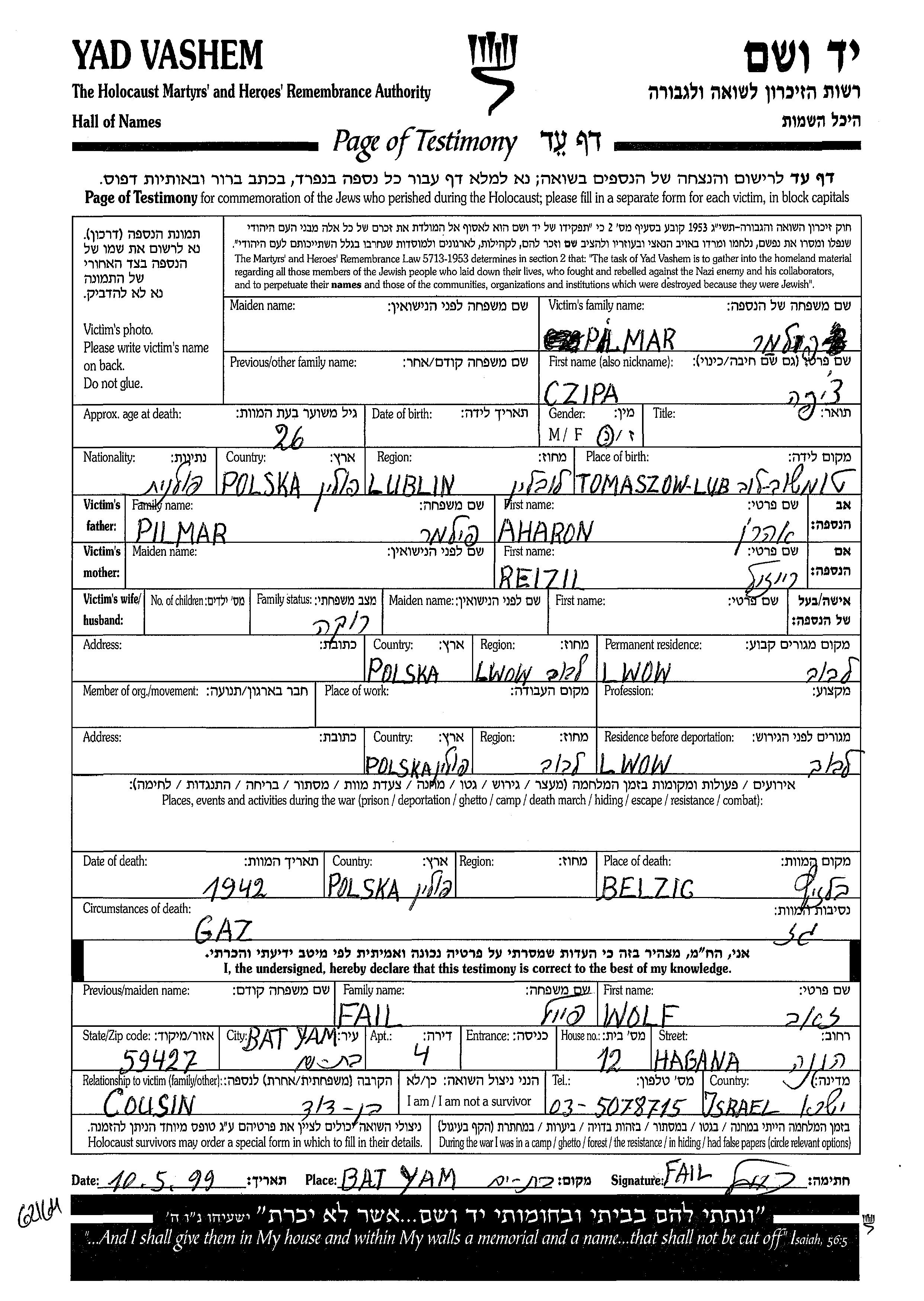 Czipa wurde in der Schoah ermordet. Todesort: unbekannt im Jahr 1942.
