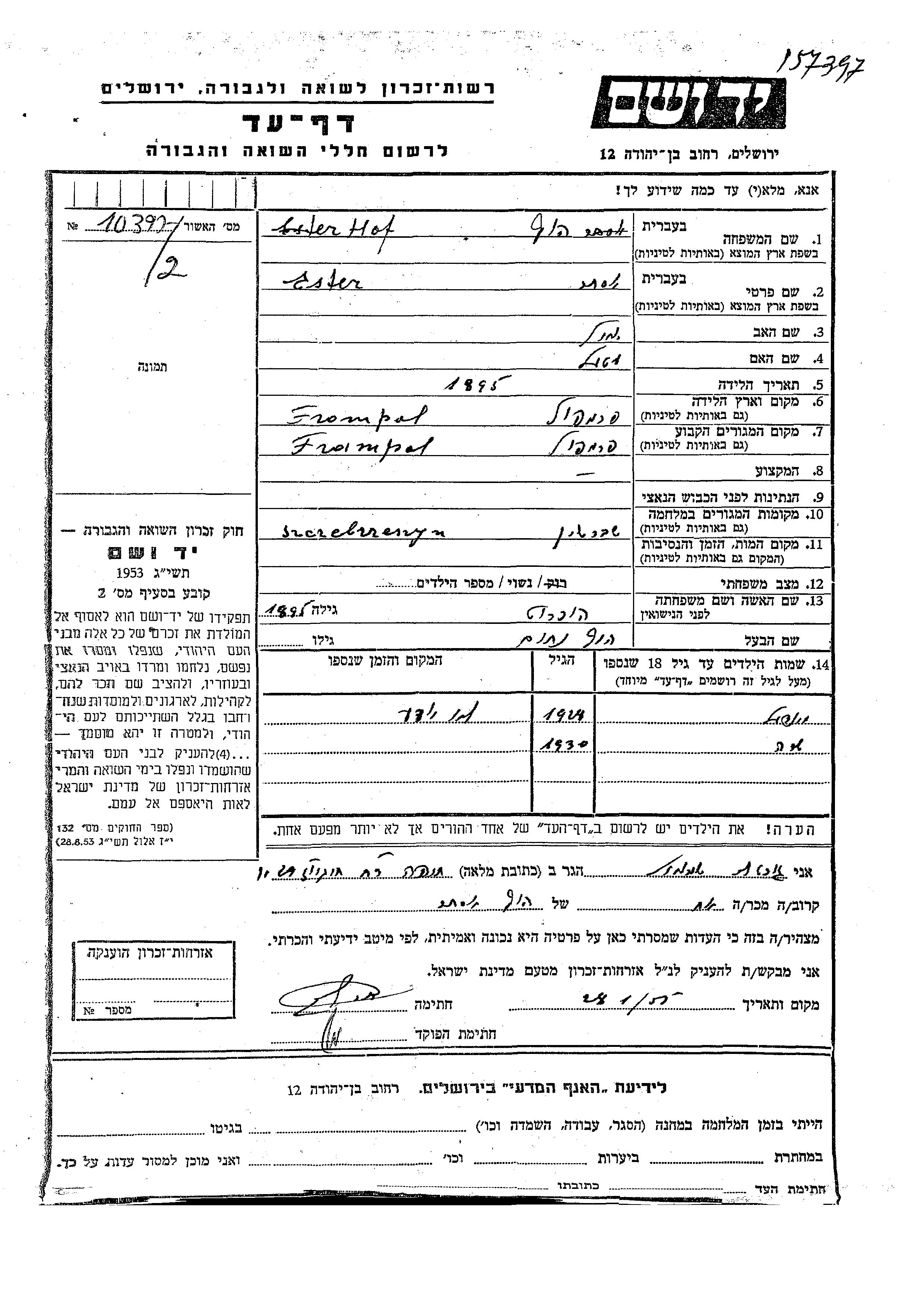 Sara Hof wurde im Jahr 1930 geboren. Vor dem Zweiten Weltkrieg lebte sie in Frampol, Polen.