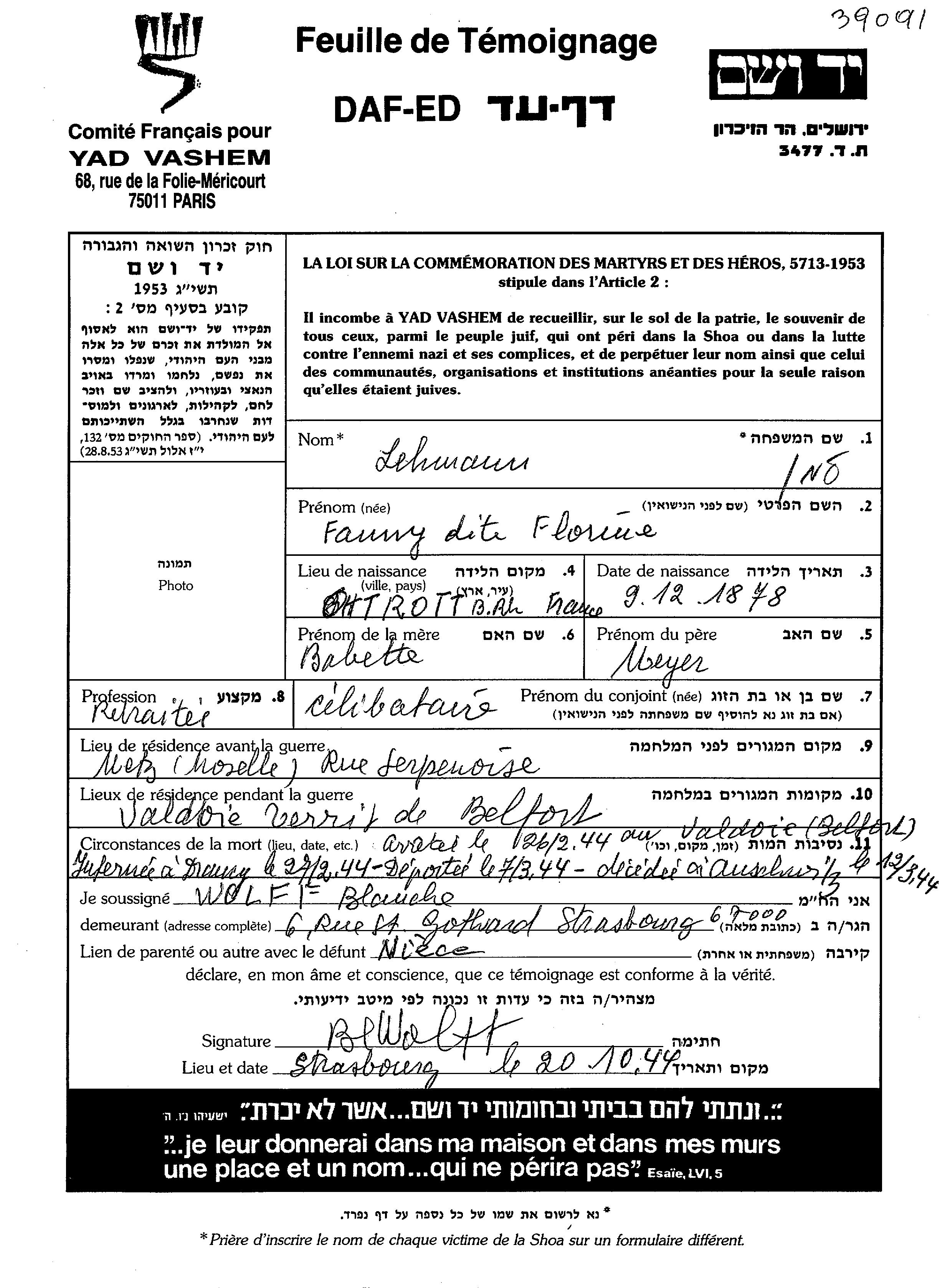 Lehmann | Fanny Florine | 1878 | Metz, Frankreich | Gedenkblatt |