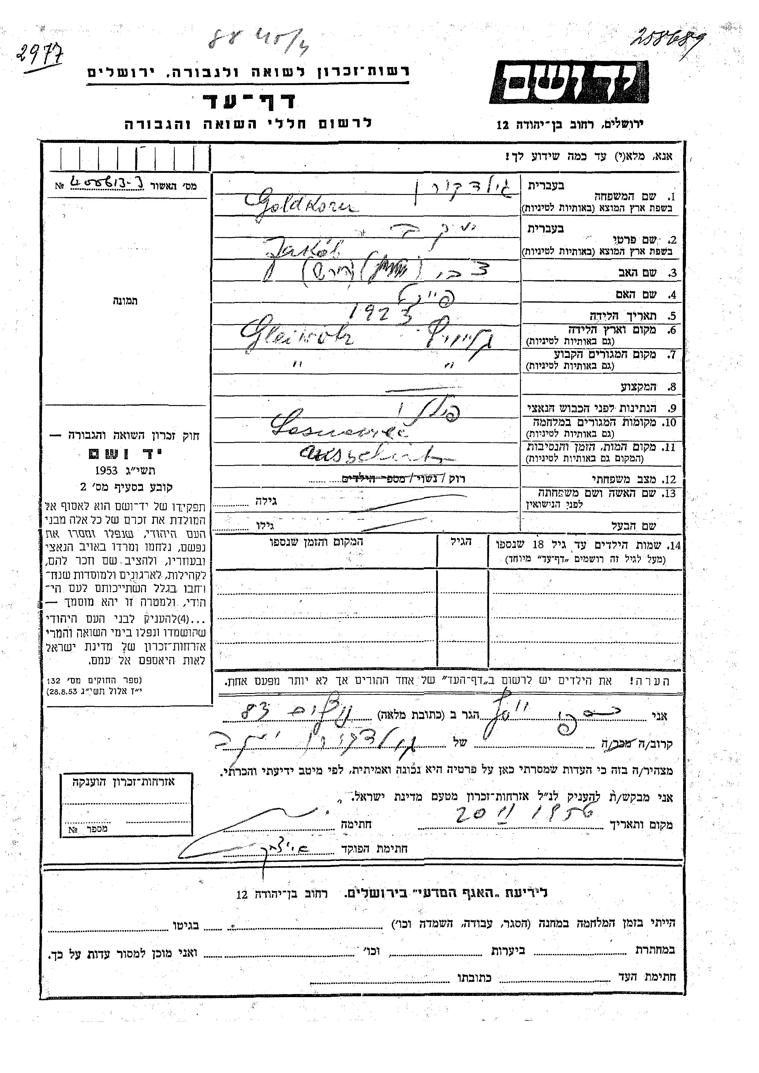 Yaakov Goldkorn wurde im Jahr 1923 in Gleiwitz, Deutsches Reich geboren. Vor dem Zweiten Weltkrieg lebte er in Gleiwitz, Deutsches Reich.
