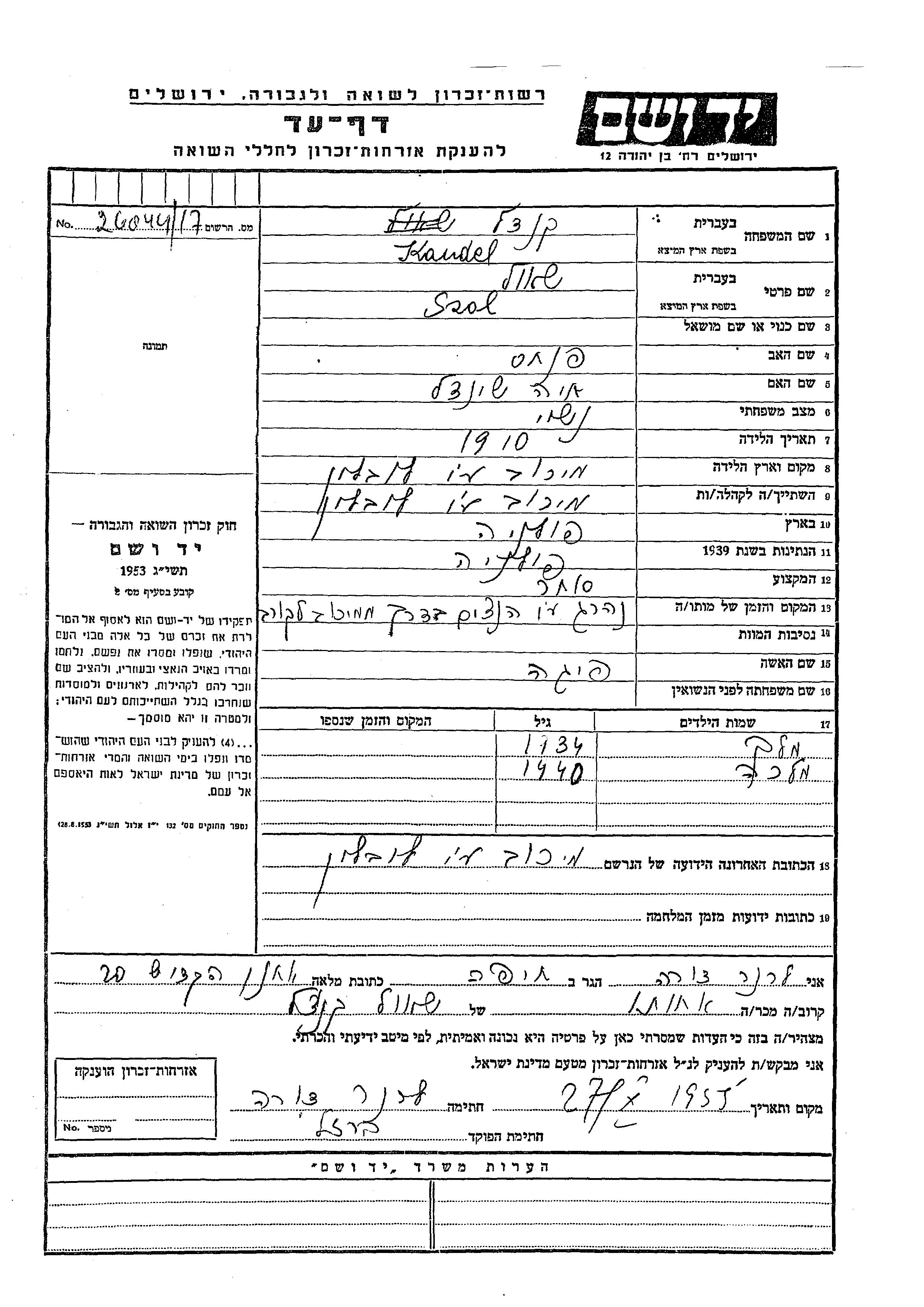 Suche nach einem Todesjahr im Zeitraum der Holocaust: 1933 bis 1945. Bitte wählen Sie 'Exakt' im Auswahlmenü, um nur nach einem einzelnen Jahr zu suchen, alternativ können Sie die flexibleren Optionen '+/- 2 Jahre' oder '+/- 5 Jahre' wählen.