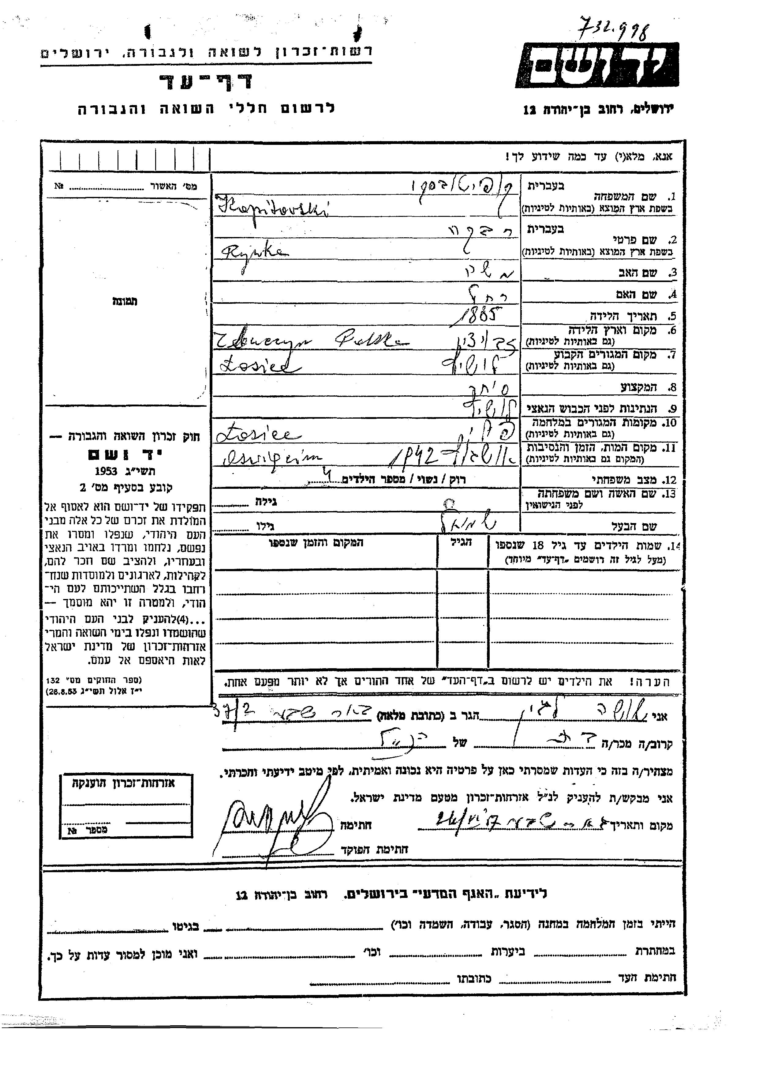 Riwka Kopitovski wurde im Jahr 1885 in Zbuczyn, Polen geboren. Sie war die Tochter von Moshe und Rakhel. Sie war Kaufmann/-frau und mit Shmuel Verheiratet. Vor dem Zweiten Weltkrieg lebte sie in Losicze, Polen. Während des Krieges war sie in Losicze, Polen.