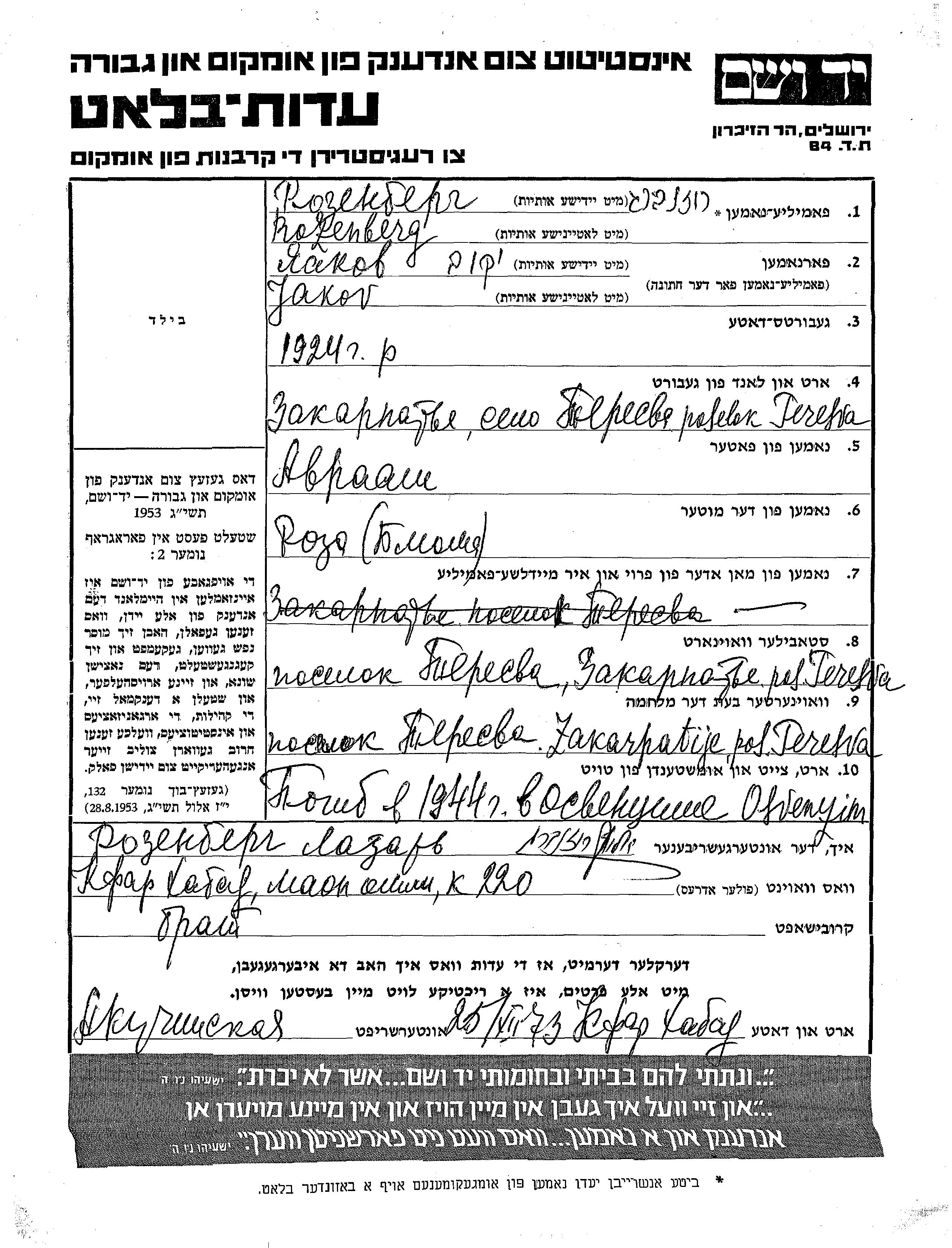 Suche nach einem Todesjahr im Zeitraum der Holocaust: 1933 bis 1945. Bitte wählen Sie 'Exakt' im Auswahlmenü, um nur nach einem einzelnen Jahr zu suchen, alternativ können Sie die flexibleren Optionen '+/- 2 Jahre' oder '+/- 5 Jahre' wählen.