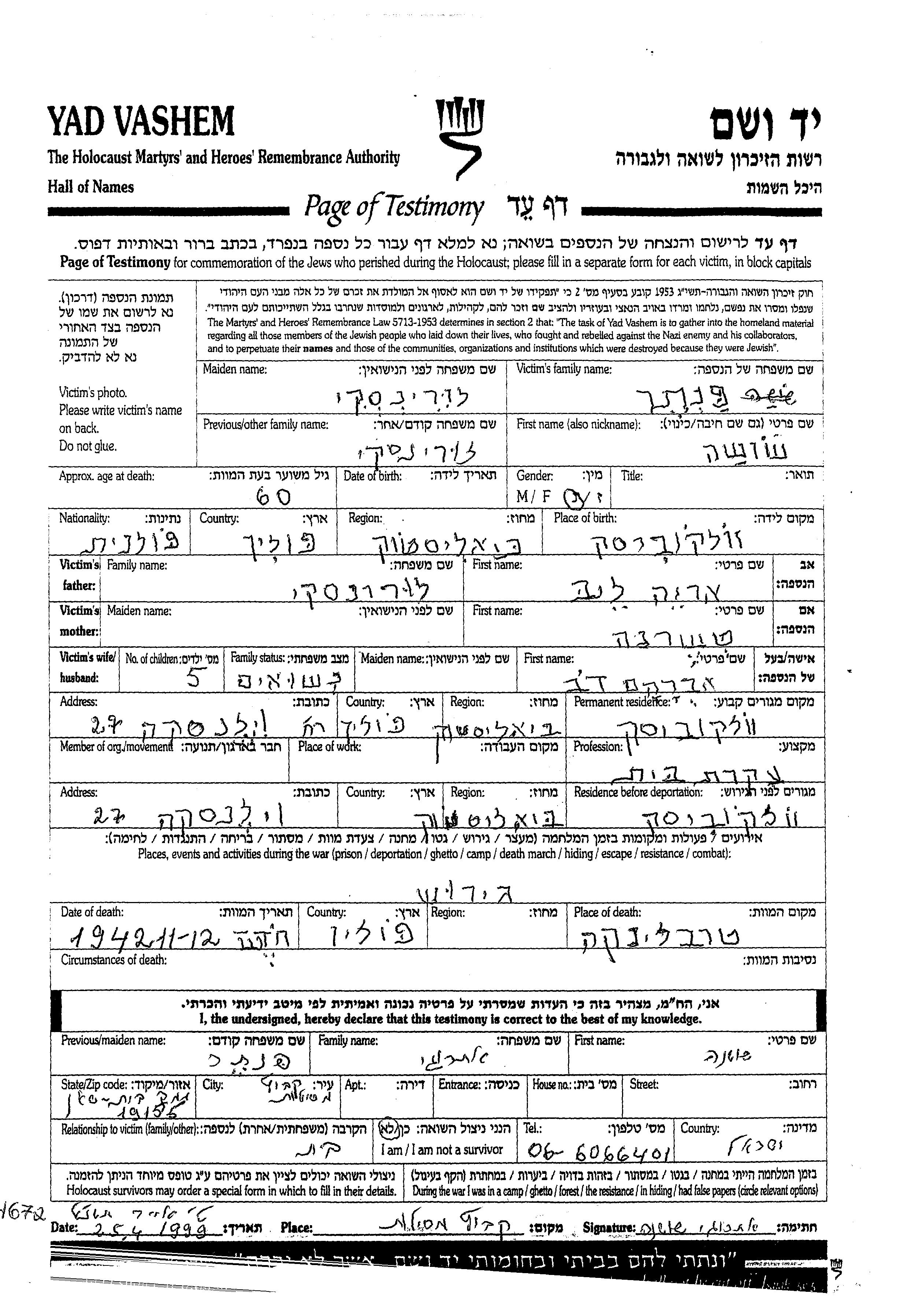 Shosha wurde in der Schoah ermordet. Todesort: Treblinka, Polen im Jahr 11/12/1942.