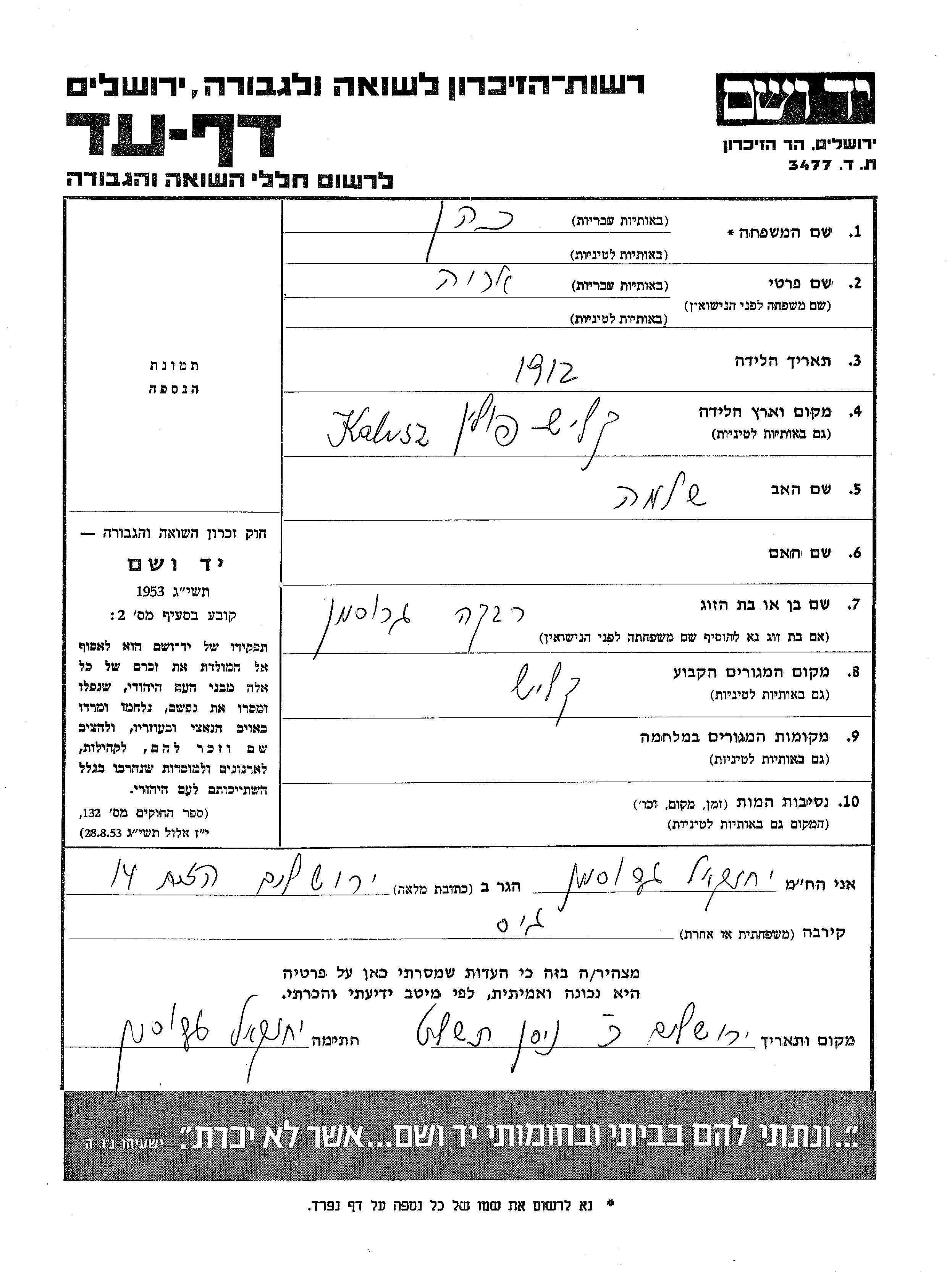Arie Kohen wurde im Jahr 1912 in Kalisz, Polen geboren. Vor dem Zweiten Weltkrieg lebte er in Kalisz, Polen.