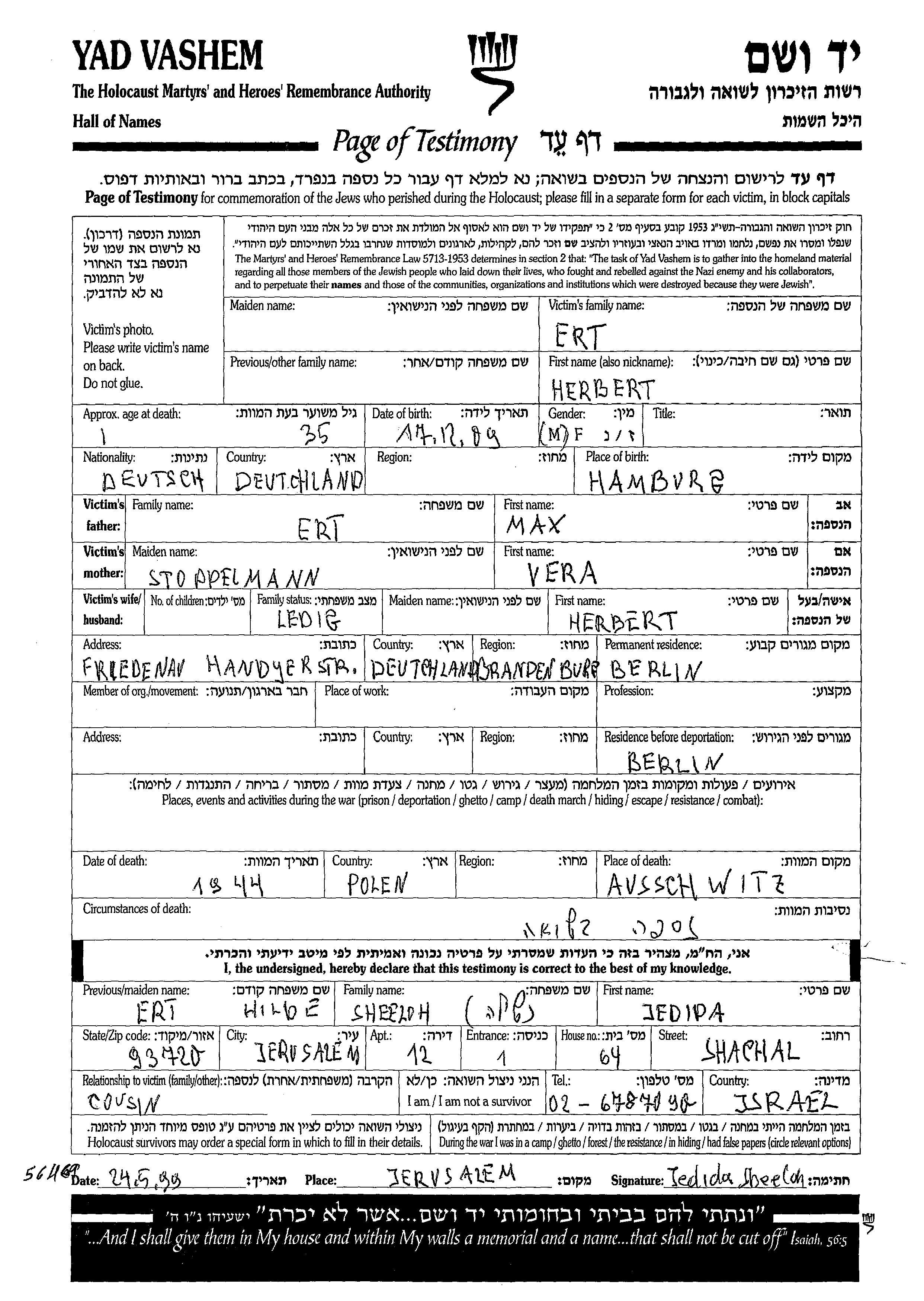 Ert Herbert A 1909 Berlin, Deutsches Reich Liste von ermordeten Juden aus Deutschland