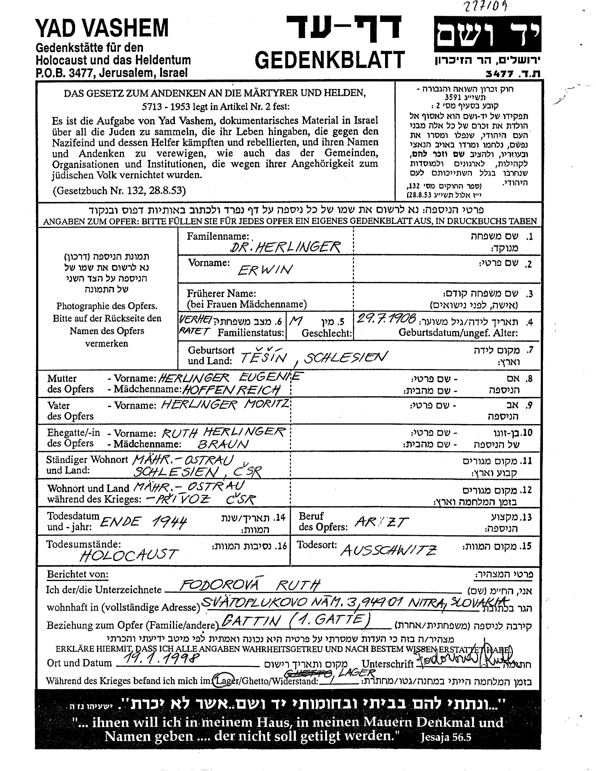 Suche nach einem Todesjahr im Zeitraum der Holocaust: 1933 bis 1945. Bitte wählen Sie 'Exakt' im Auswahlmenü, um nur nach einem einzelnen Jahr zu suchen, alternativ können Sie die flexibleren Optionen '+/- 2 Jahre' oder '+/- 5 Jahre' wählen.