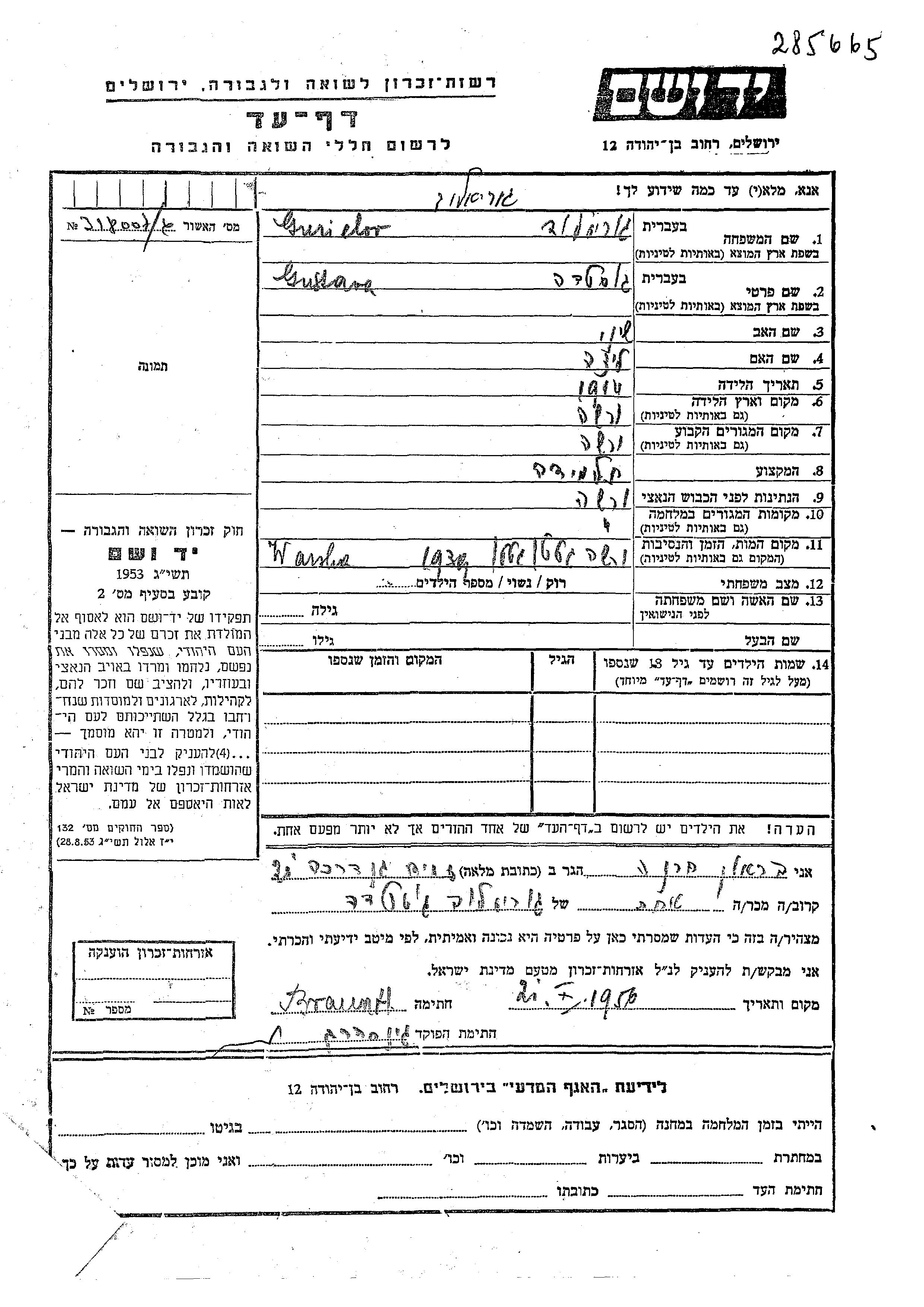 Gustava Gurielov wurde im Jahr 1914 in Warszawa, Polen geboren. Sie war die Tochter von Sheini und Liza. Sie war Schüler/-in. Vor dem Zweiten Weltkrieg lebte sie in Warszawa, Polen. Während des Krieges war sie in Warszawa, Polen.