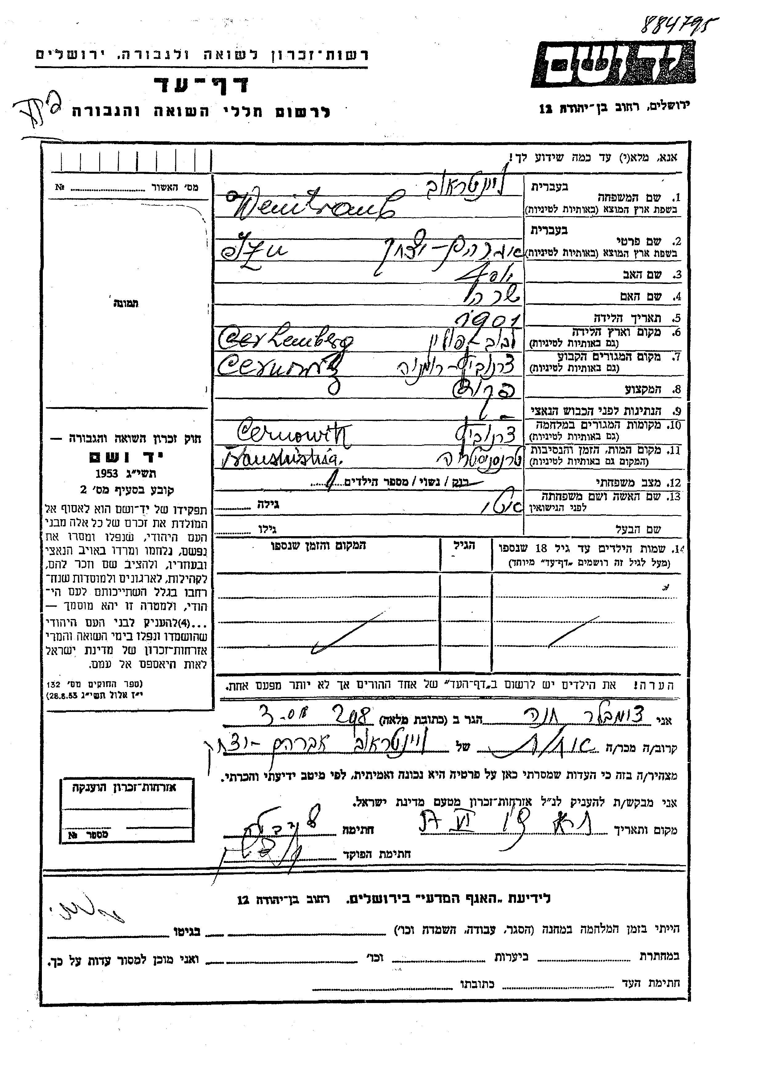 Weintraub | Izu Avraham | 1901 | Chernowitz, Rumänien | Gedenkblatt |